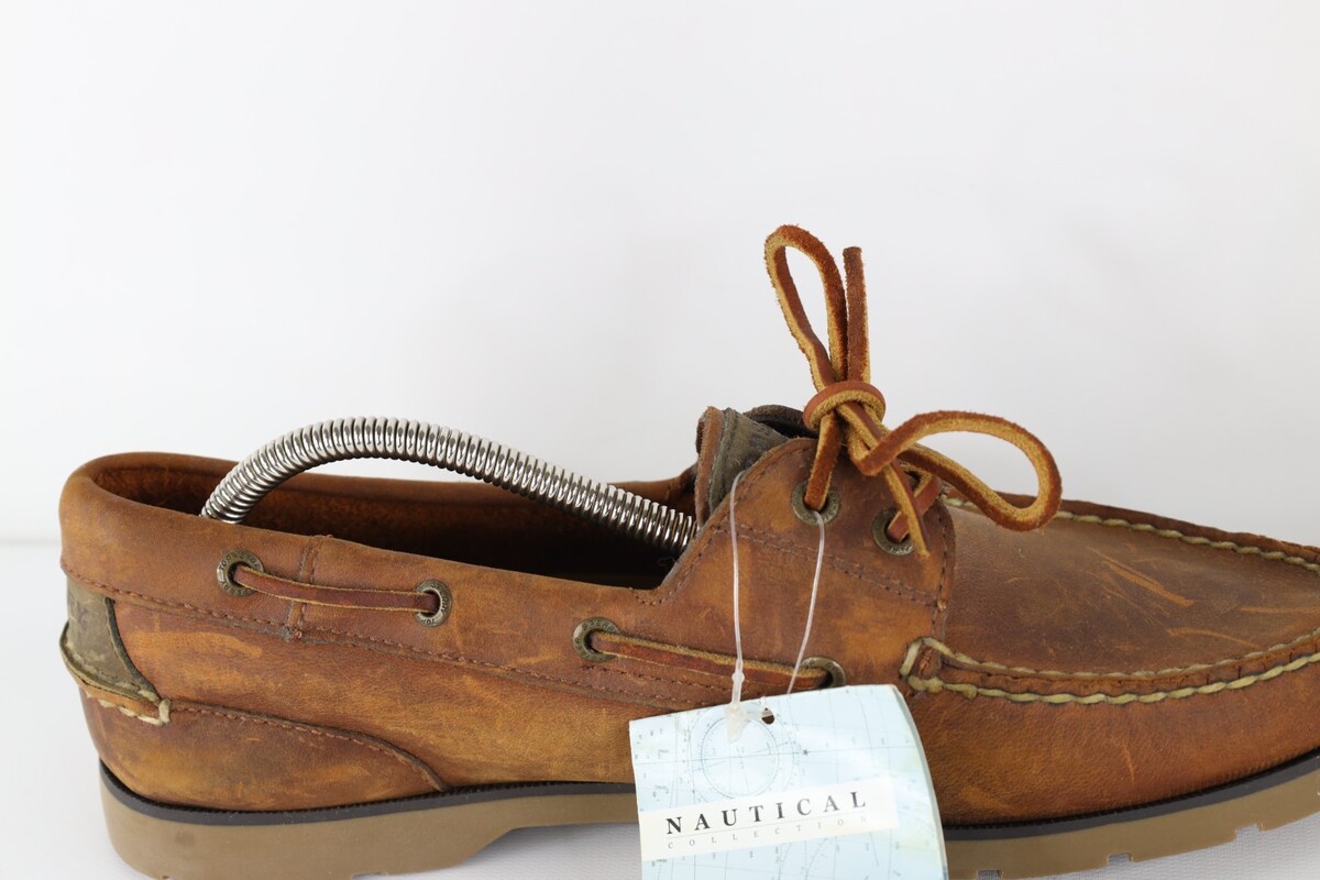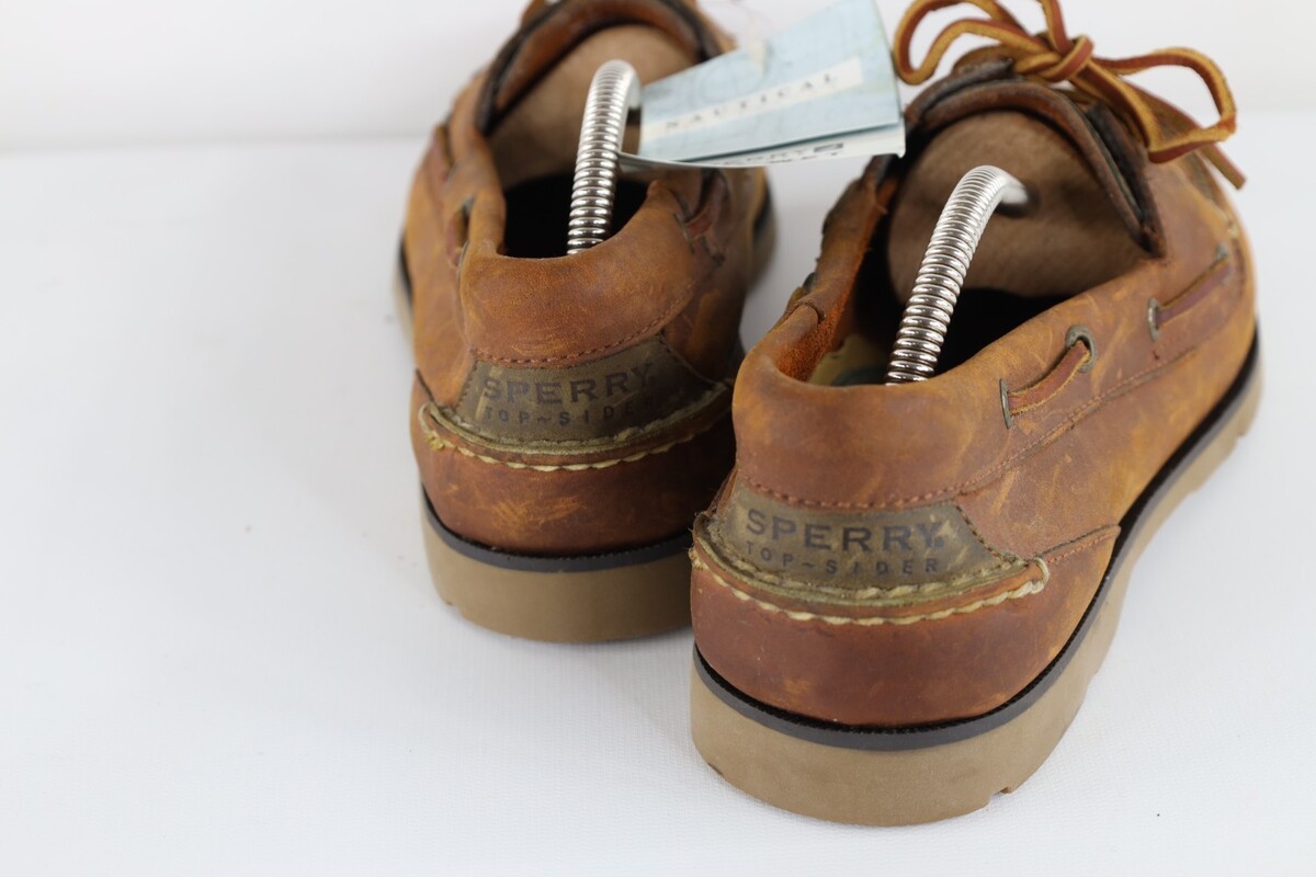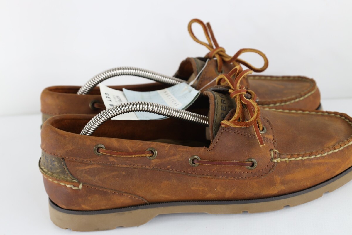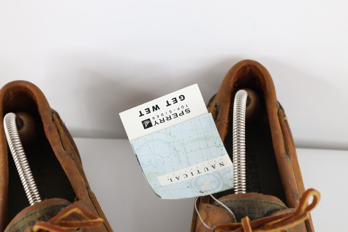 Deadstock Vintage Sperry Top Sider Mens Size 9.5 W Leather Boat Shoes Brown