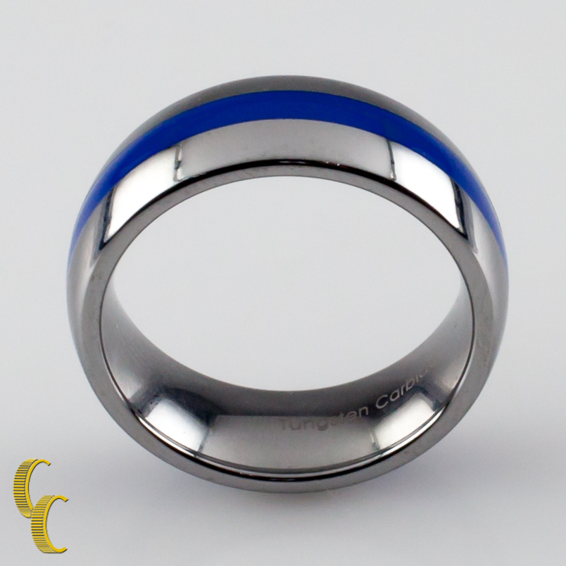 Herren -Wolfram -Carbid -Ring mit blauem Mittelstreifengroße 8