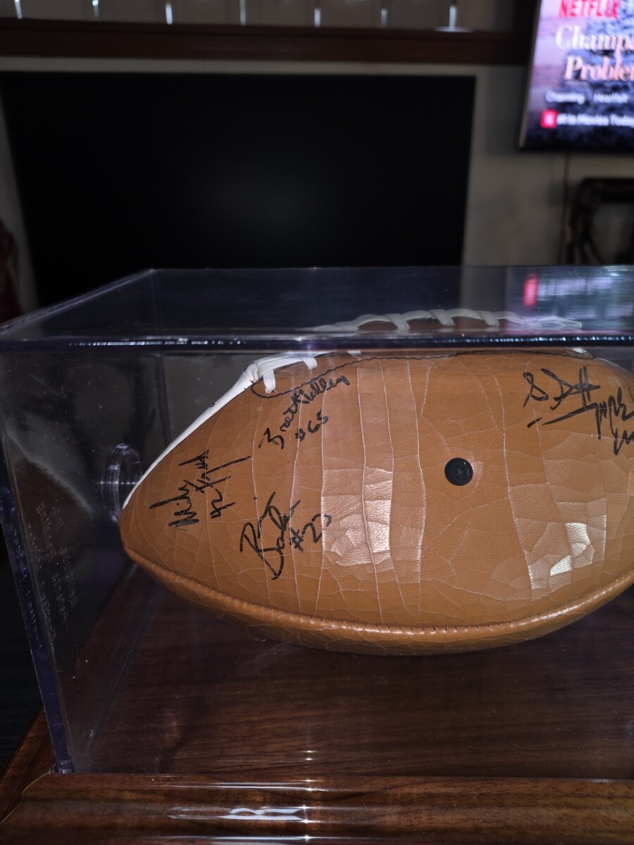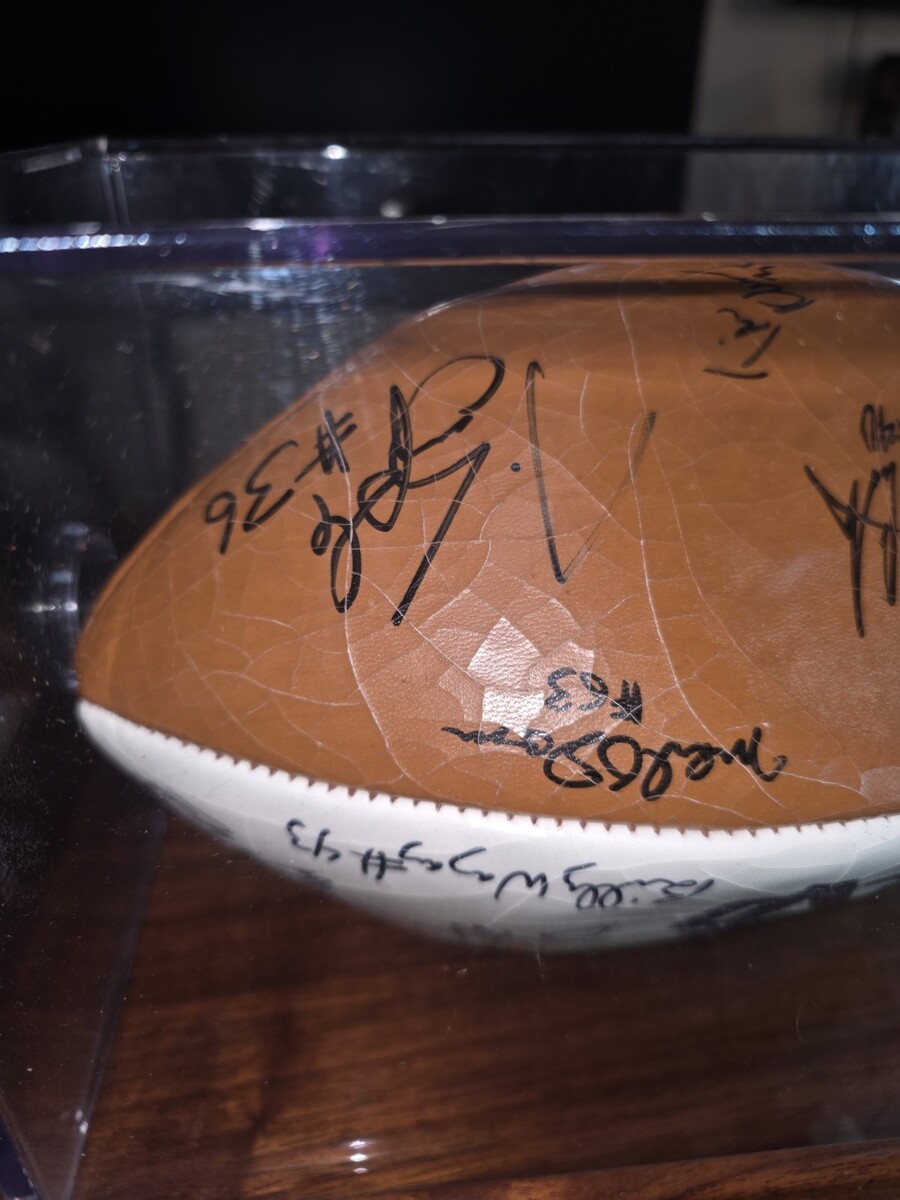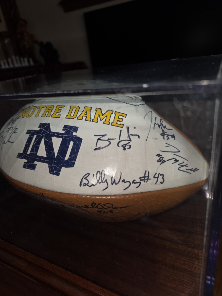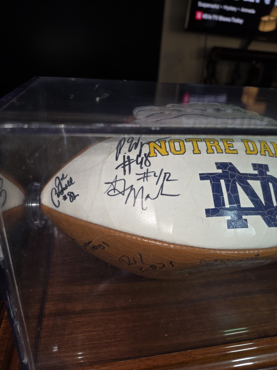 Notre Dame Football 1991 Team Autographed Football Beautiful Case Reggie Brooks