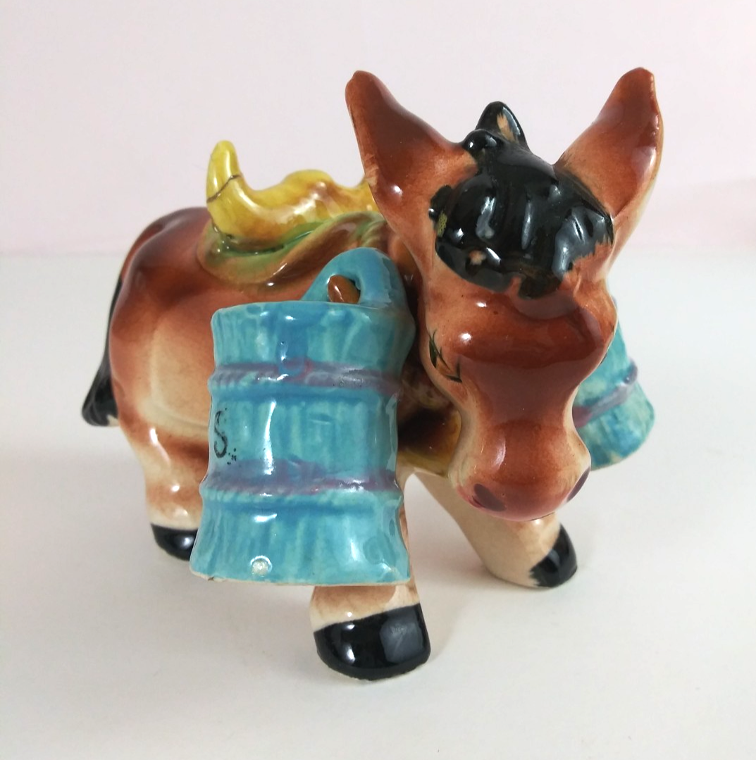 This is for a Vintage 1950s Donkey Burro Carrying Buckets Salt Pepper Shakers Japan Rare.