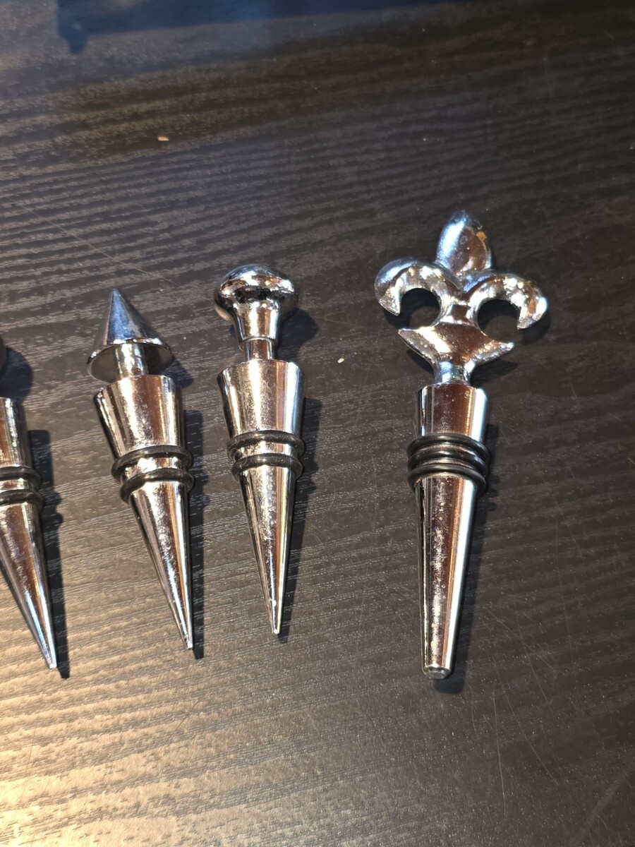 Lot Of 5 Chrome Metal Wine Stopper Corks Decorative Heavy