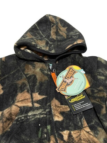 Adorable Trailcrest 2 Piece Fleece camouflage Outfit in 3-6 months. The outfit Is made of super soft camouflage fleece material and is hooded. Super cozy! Highland timber style. It runs big so it fits more like a size 6 months.