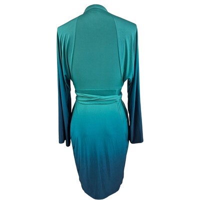 Y2k Vtg Moda International SPandex Green/Blue Wrap Dress Sz M kimono Sleeves