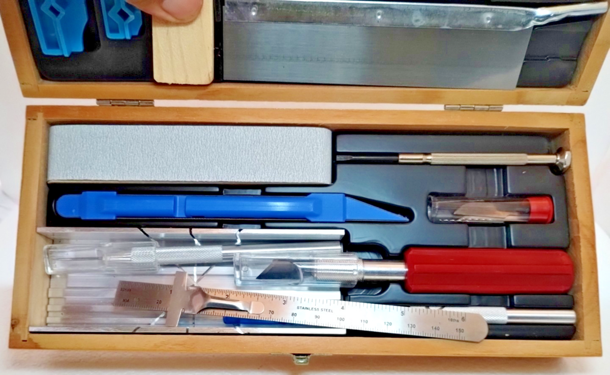 Head Screwdriver, 1 - Sanding Block, 1 - Needle Point Awl, 1 - Miter Box, 1 - Swivel