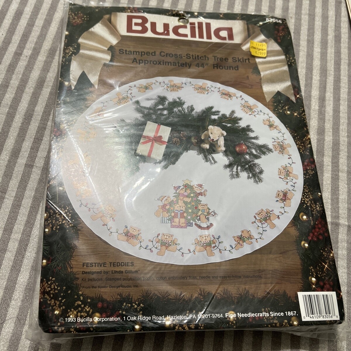 Bucilla Cross Stamped Cross Stitch Christmas Tree Skirt 44" Round New