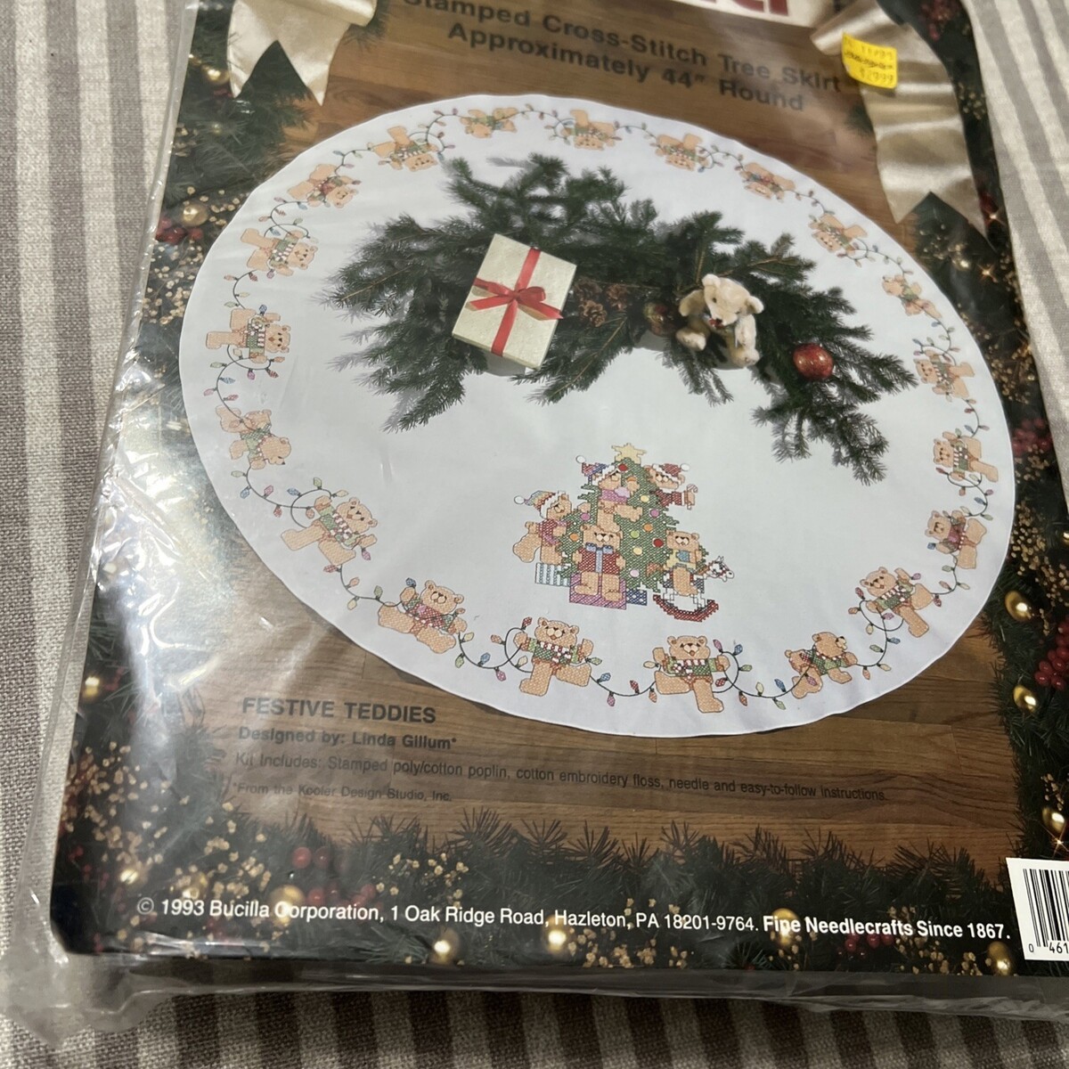 Vintage Bucilla Stamped Cross Stitch Christmas Tree Skirt