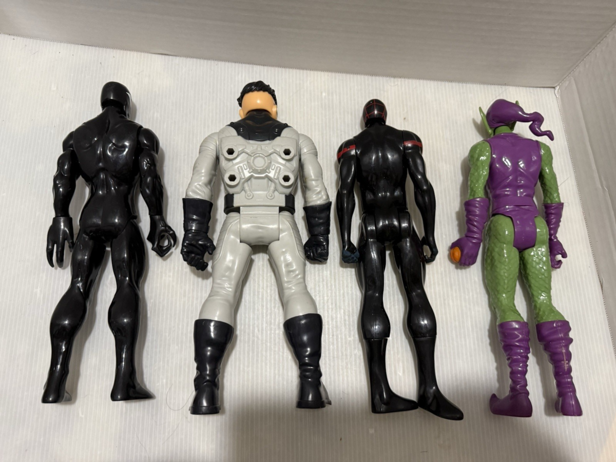 The product is a set of four Marvel action figures featuring characters such as Venom, Doc Ock, and Green Goblin. These figures are inspired by Marvel's The Avengers movie and franchise Spider-Man, with a focus on the featured characters of Green Goblin and Venom. The action figures are designed in gray color and come in a mixed lot, making them a great addition for fans and collectors of Marvel superheroes and villains.