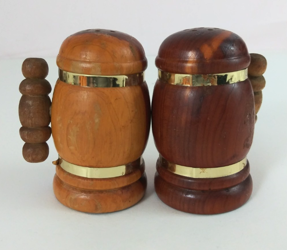 This is for a Vintage Lake Of The Ozarks Beer Mug Stein Wooden Salt Pepper Shakers.