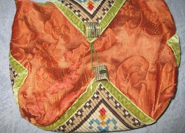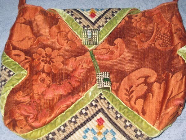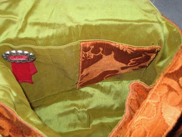 Wonderful Vintage Handmade Embroidered Rich Orange Jacquard Fabric Purse