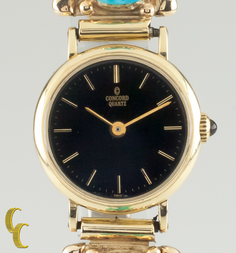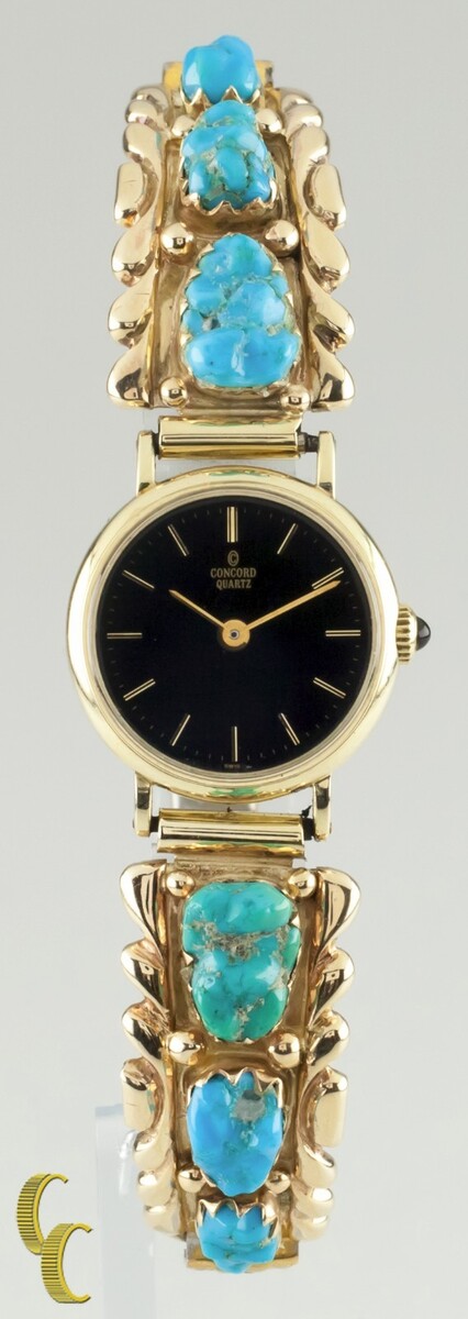 Montre a quartz Concord en or jaune 14 carats avec Wayne et Virginia Quam Turquoise en or 14 carats