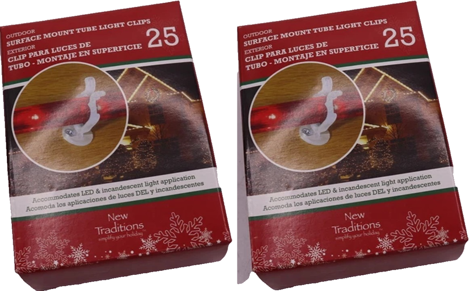 - 25-count clear plastic clips for 1/2-inch rope light strands