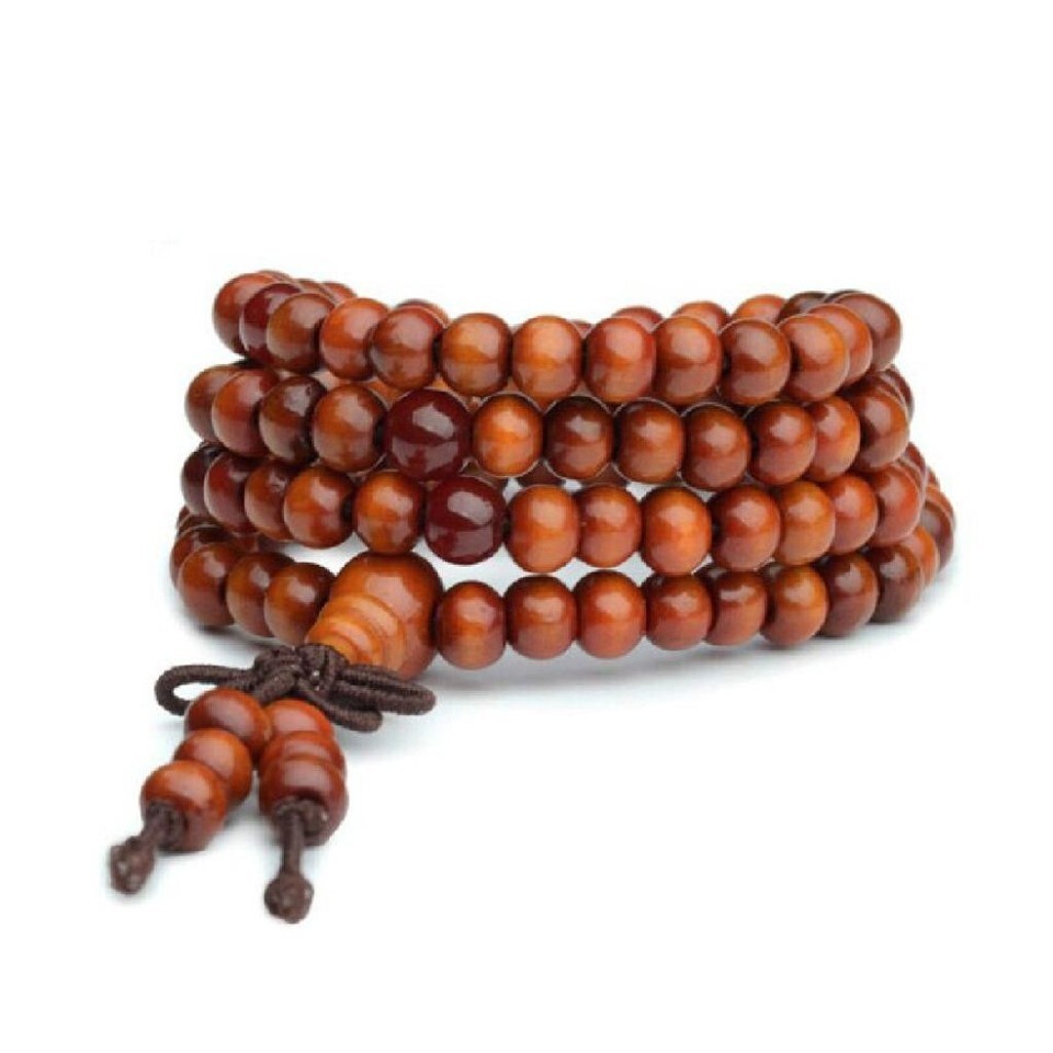 This mala is made of 108 wood beads and is strung with durable elastic cord.