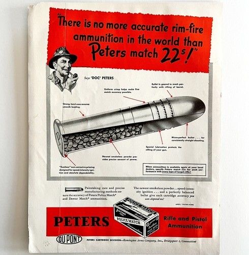 Peters Ammunition 1946 Advertisement Doc Rim Fire Match .22 Caliber DWCC3