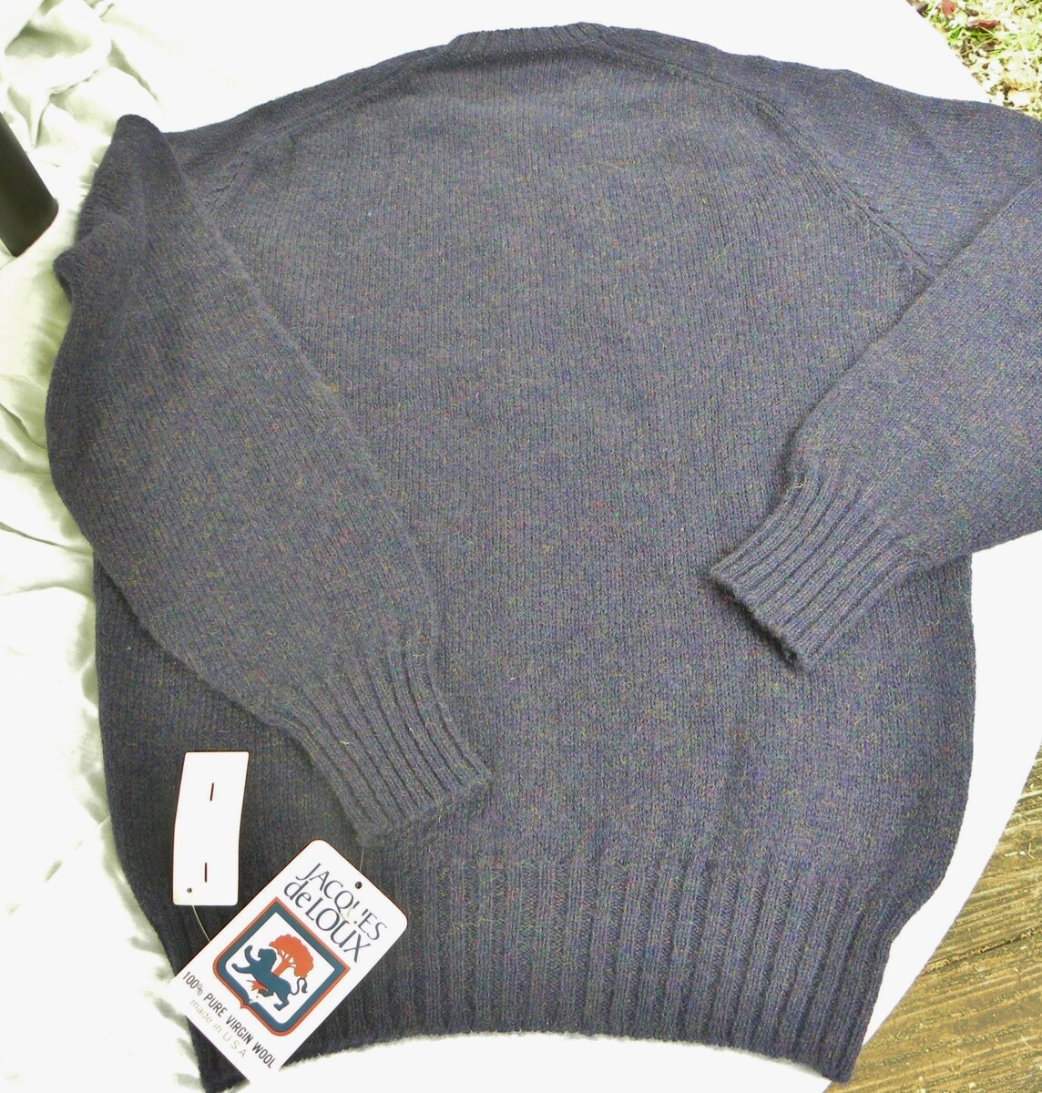 Trivia Note: This sweater was sold at a store in New Jersey called Landaus. It was founded by the brothers grandfather, Henry, in Jersey City in 1914. Their parents, David Evelyn Landau, moved the store to Princeton,NJ in 1955. It occupied a small space on Witherspoon Street before moving to its longtime home at 102 Nassau Street in the early 1960s. In the 1970s, after Robert Landau joined the family business he happened to buy some wraps made from Icelandic wool at a trade show. Before long the store accounted for 30 percent of Icelands woolens exports. In 1982 the Landaus were dubbed ?the wool family? by Icelands president. They sold fabulous merino shetland sweaters. The "WOOL" family retired in 2022 but the Landau's location in NJ has a little museum for the public to visit.