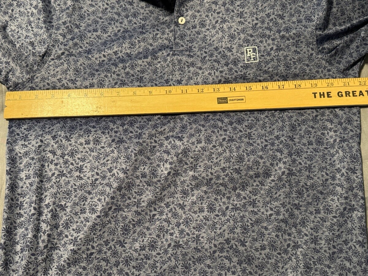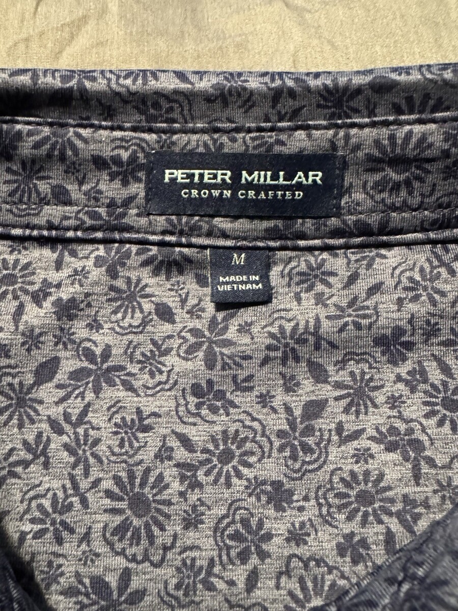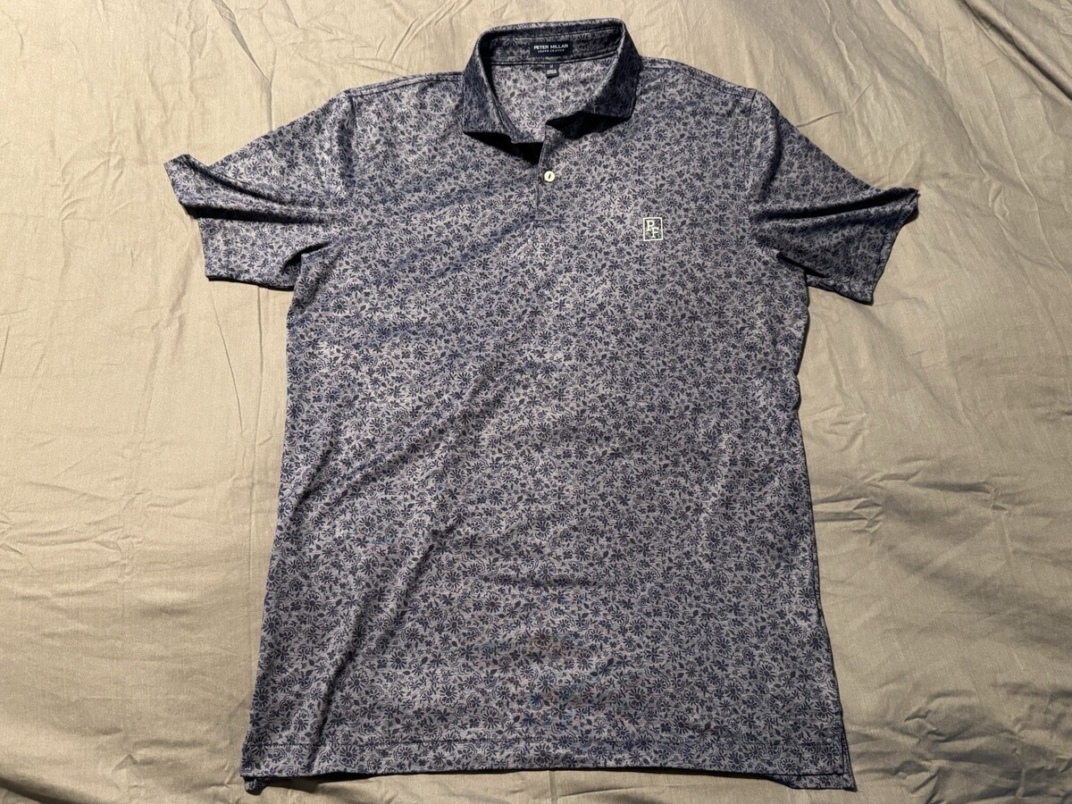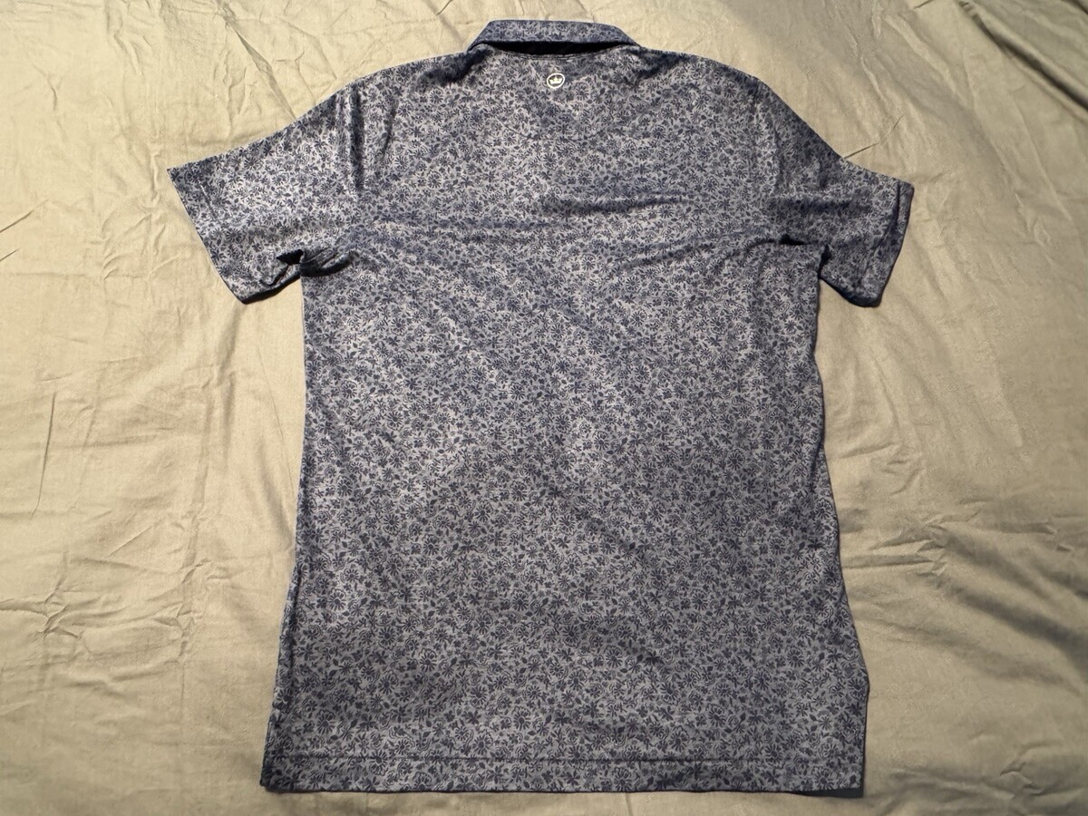 Peter Millar Crown Crafted Floral Performance Polo Shirt Blue Gray Men’s Medium
