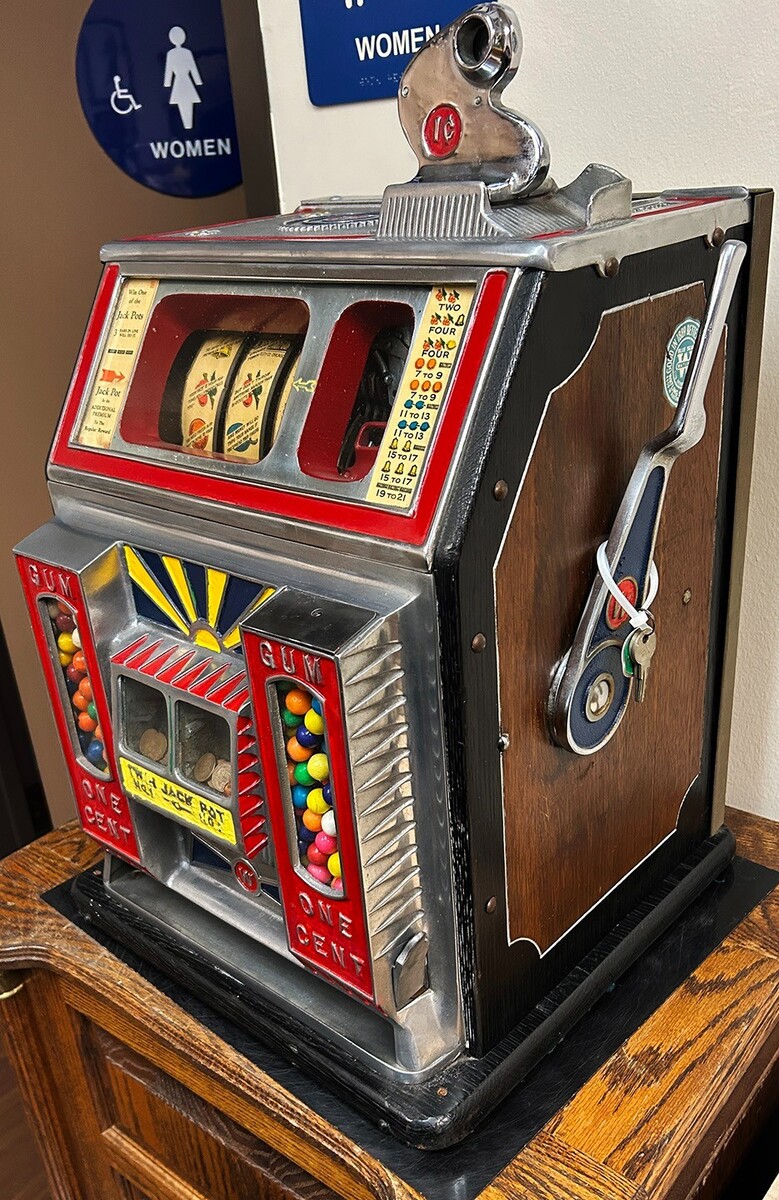 Watling 1c Blue Seal Slot Twin Jackpot, Front Gumball Vender circa 1920