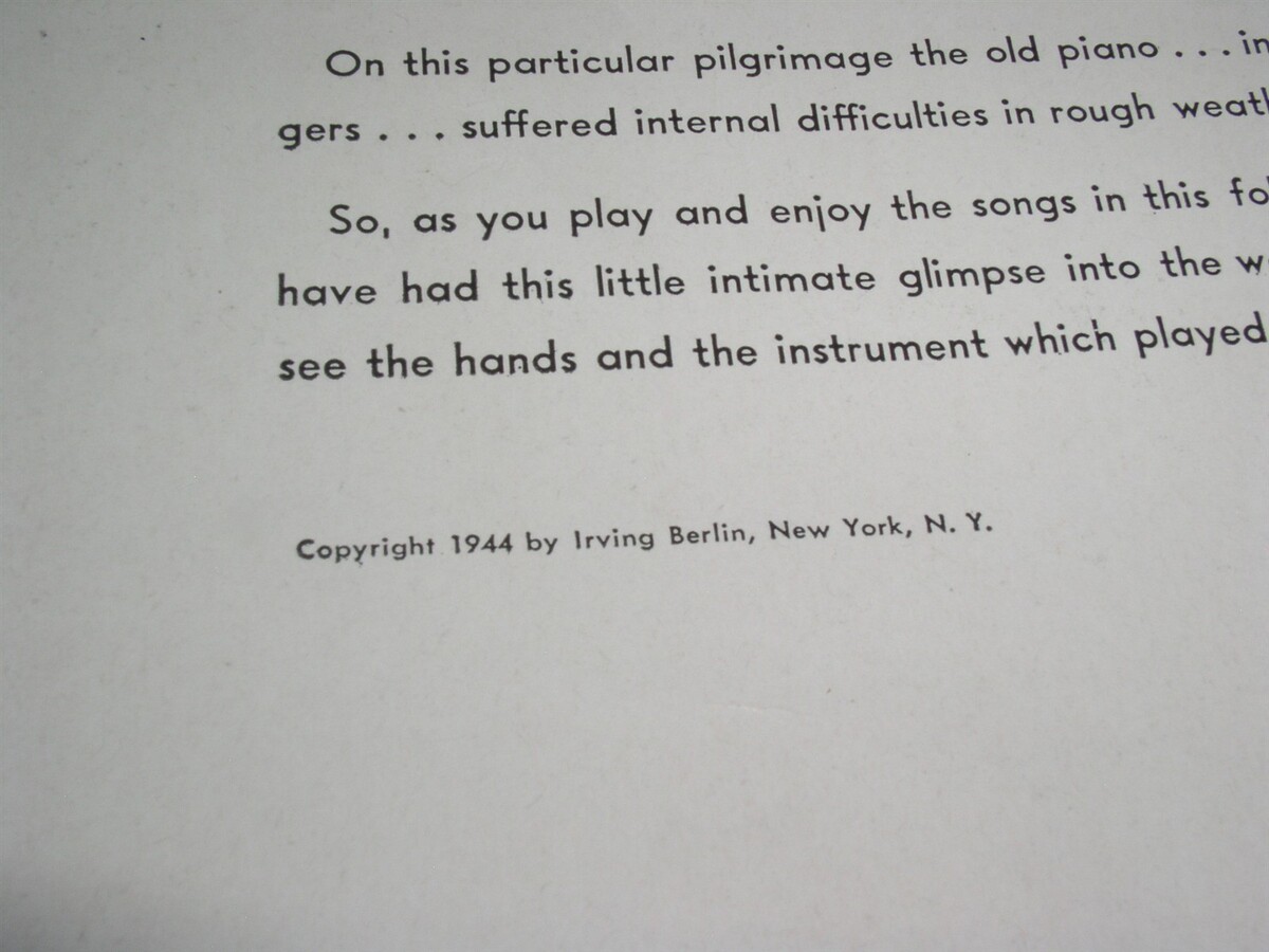This is a vintage song book entitled, "Irving Berlin Song Folio No. 1. Dated 1944 by Irving Berlin Music Company.