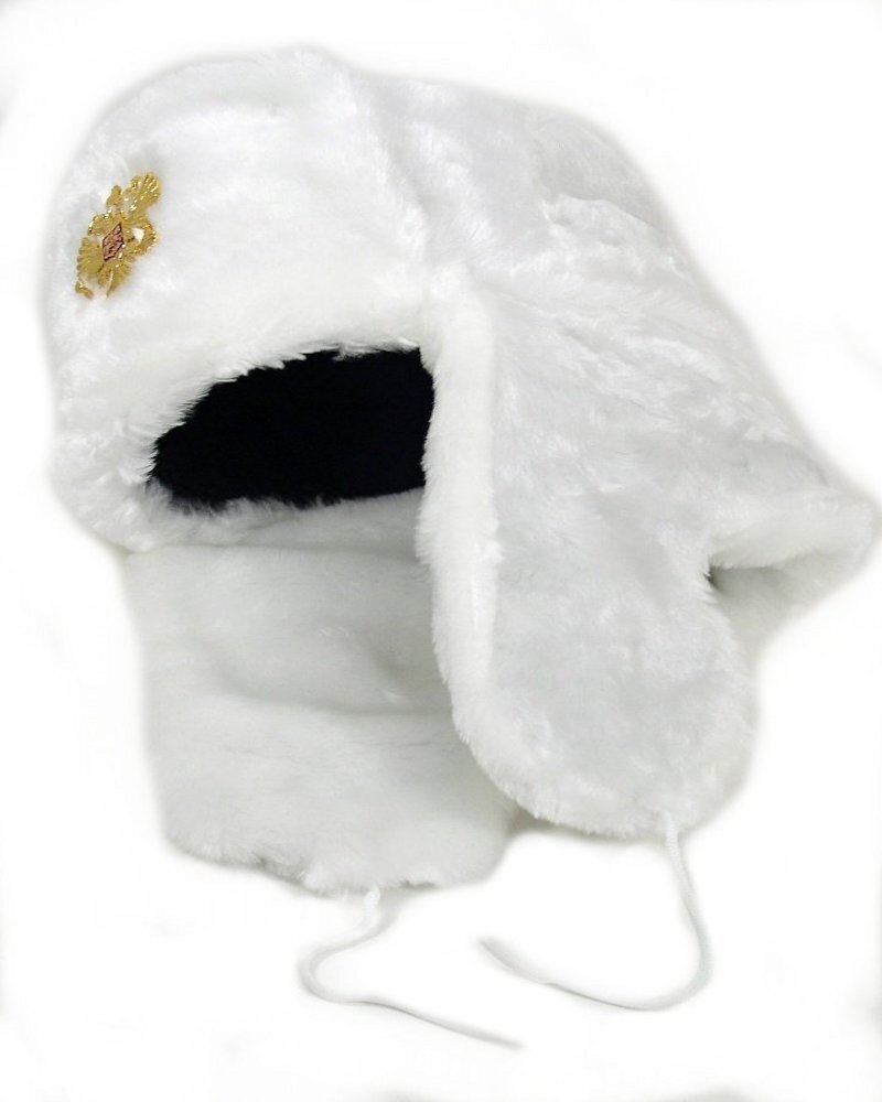 Autentico Bianco Russo Militare Ushanka Con Soivet Imperial Aquila
