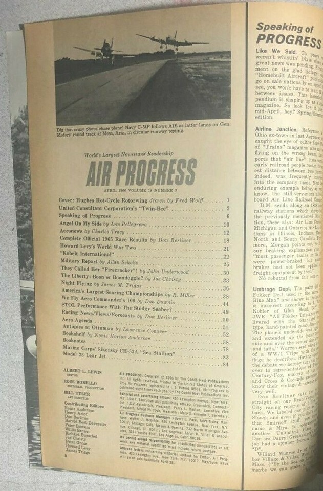 AIR PROGRESS Aviation Magazine April 1966 FREE US SHIPPING!