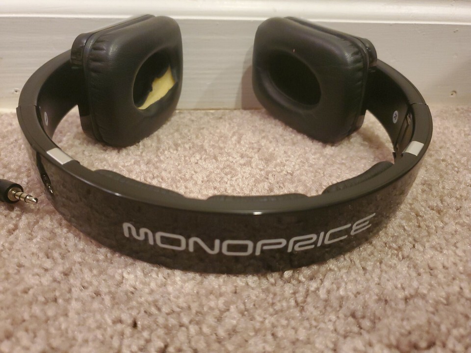 Monoprice On-the-Ear headphones, unidentified model number. Left ear has slight wear to padding (see images).