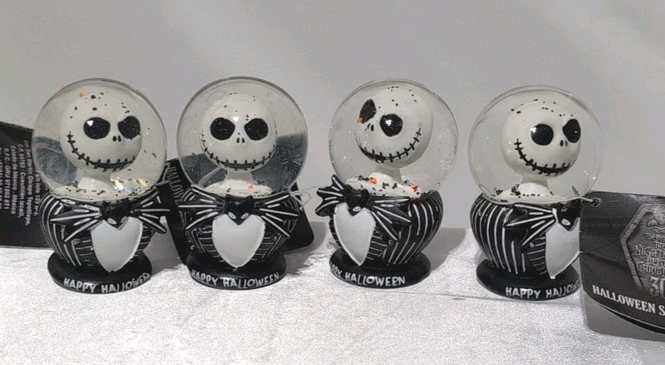 This rare and highly collectible set features four individual snow globes from Tim Burton?s The Nightmare Before Christmas. Each globe showcases iconic character Jack Skellington ?perfect for Disney fans, collectors of gothic decor, or lovers of this cult classic film.