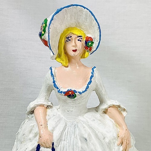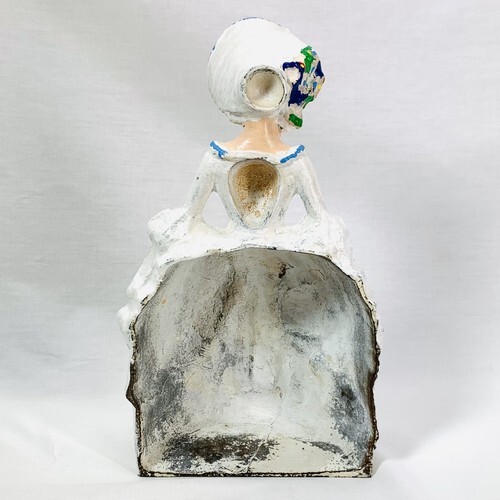 Antique Colonial Woman Cast Iron Doorstop White Dress Southern Belle 10.5”
