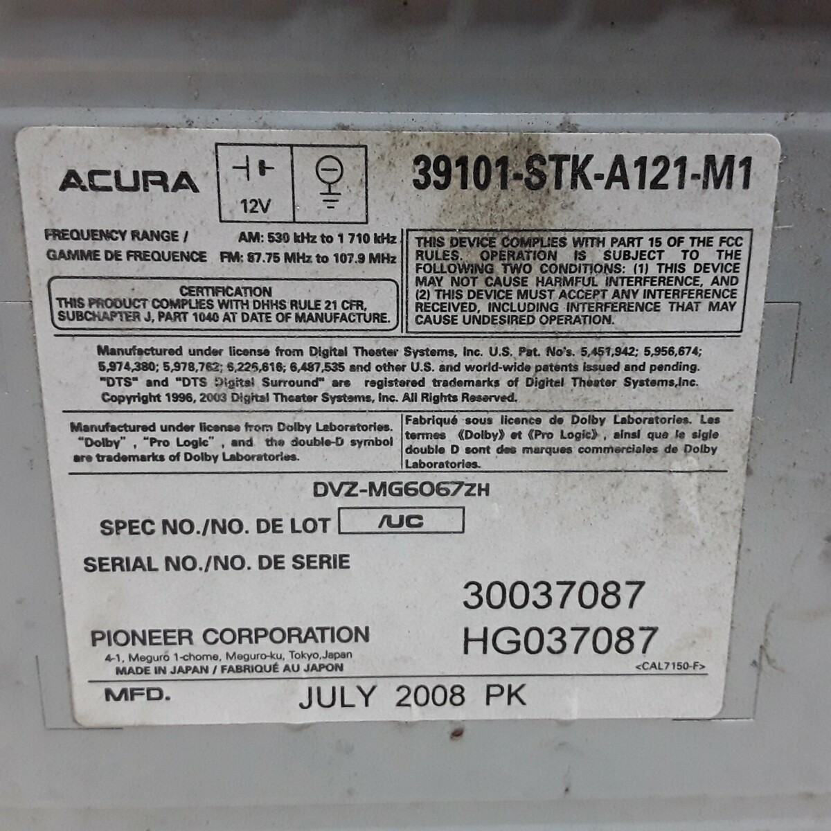 08 09 Acura Rdx Am Fm Xm 6-disc Cd Dvd Radio and 49 similar items