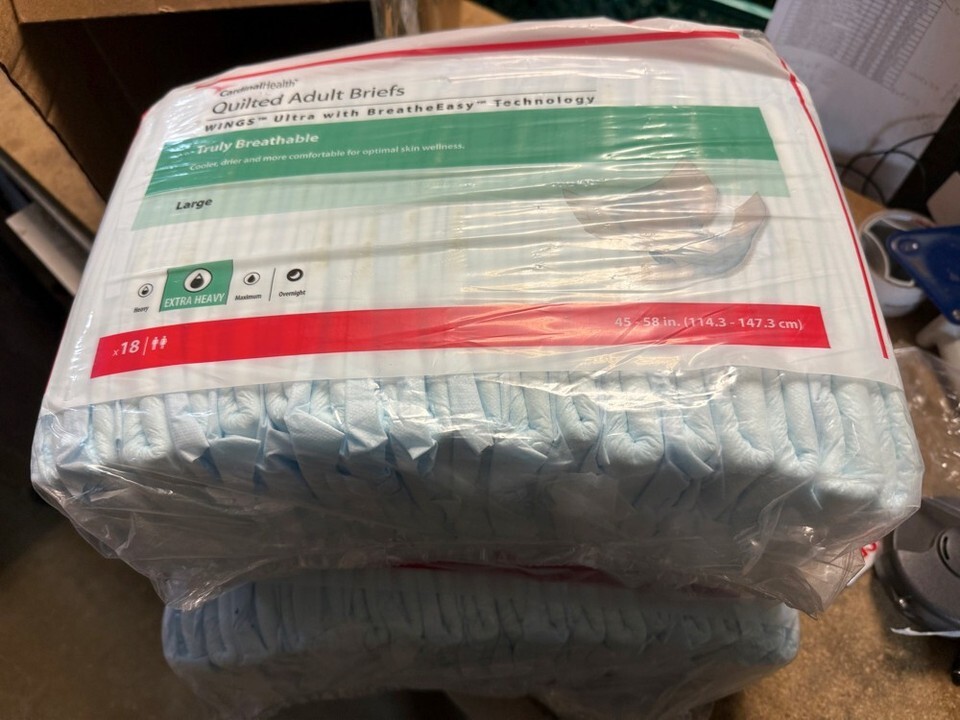 2-PACK Cardinal Extra Heavy Size Large Quilted Adult Briefs - 45-58 Inches