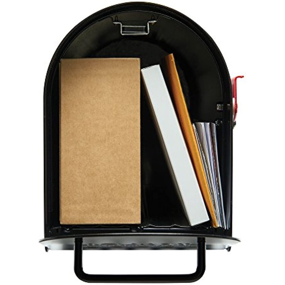 The Ironside post-mount mailbox is made from 20 lb. heavy-gauge steel and is constructed to resist damage from potential vandalism. This mailbox is equipped with a stainless-steel piano-hinged door that operates for smooth and effortless opening or closing. In addition, the magnetic door latch keeps the mailbox closed when not in use. The mailbox door and steel outgoing mail flag are both attached to the box with steel fasteners for security and durability. The Ironside is also painted in a powder-coated black finish for rust-resistance and offers a large capacity to accommodate package deliveries.