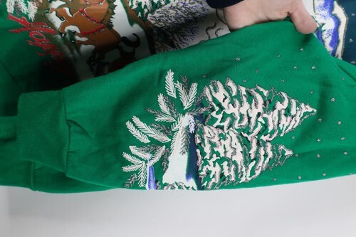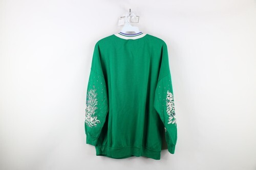 Vintage 90s Streetwear Womens XL Christmas All Over Print Sweatshirt Green USA