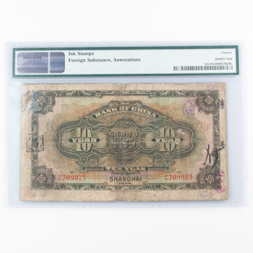 Banconota da 10 Yuan della Bank of China del 1924 classificata F-12 NET da PMG Pick 62 S/M#C294-140