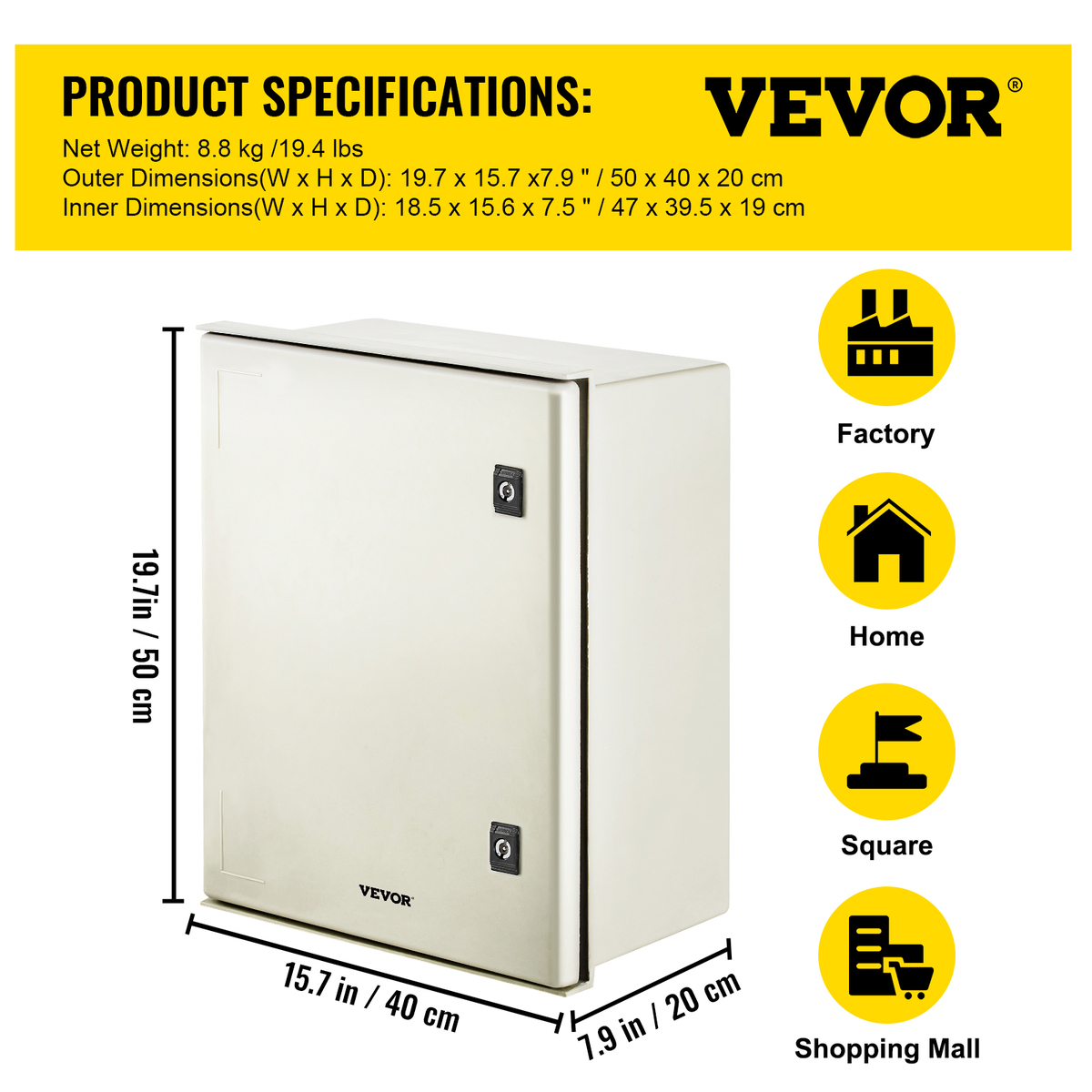 VEVOR NEMA Enclosure, 20x16x8”, NEMA 4X Fiberglass Steel Electrical Box, IP66