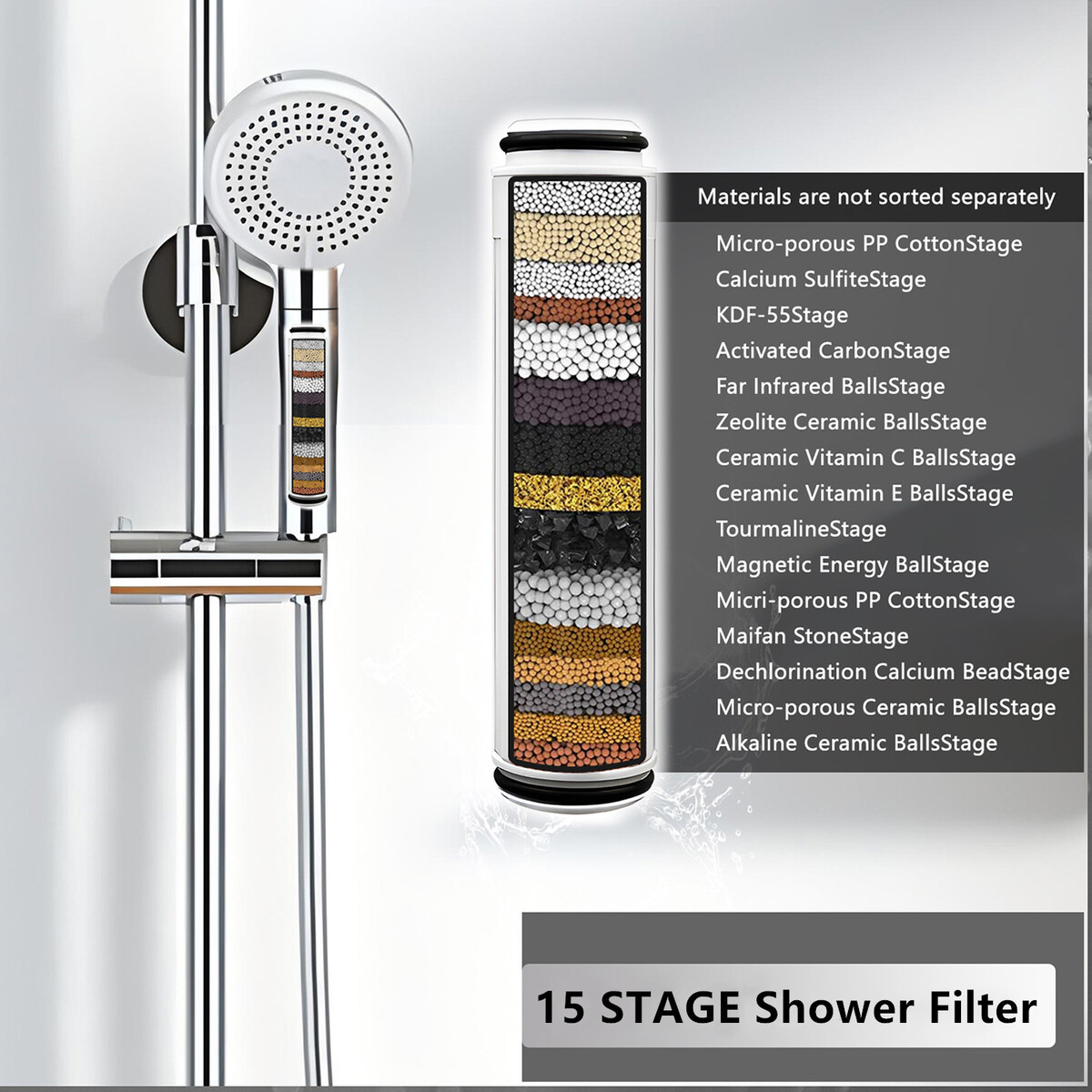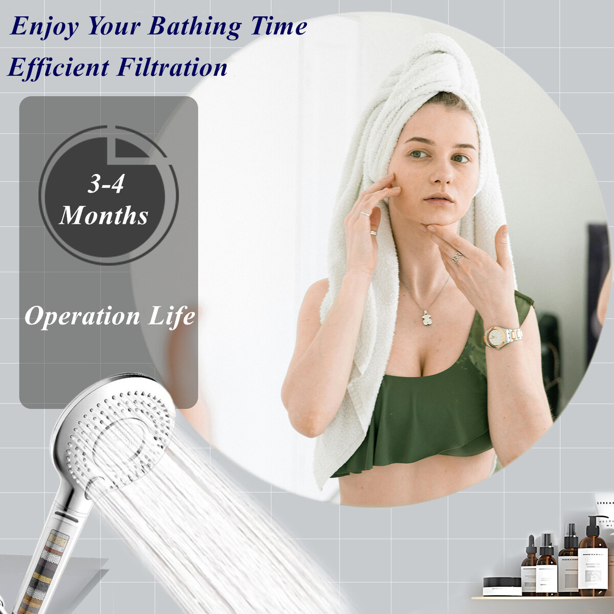Our Multi-stages shower filter can effectively reduce chlorine, fluoride, heavy metals, rust, sand and other sediment. It effectively controls scale buildup and restores the damage caused by hard water and chemicals to your hair, skin, and nails.