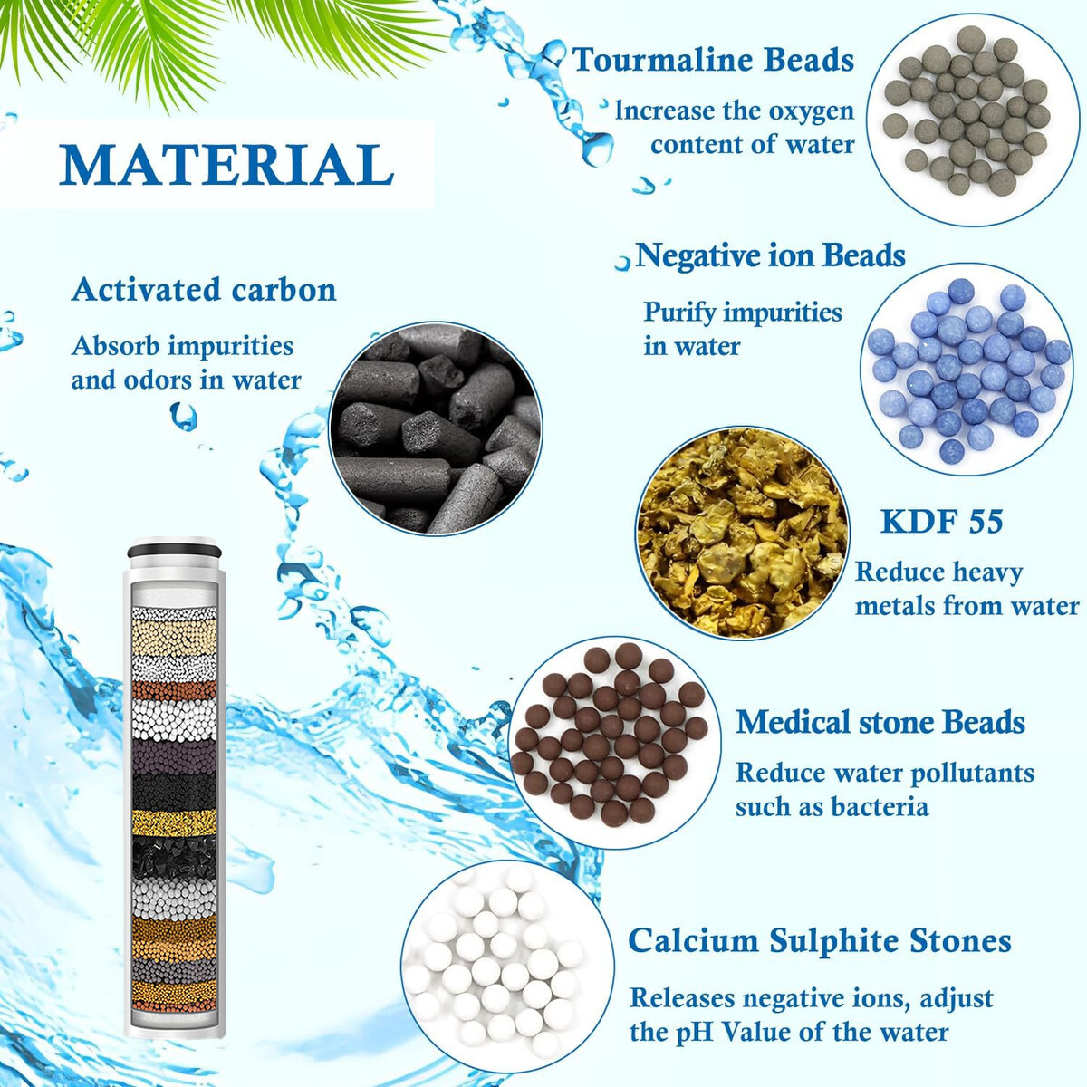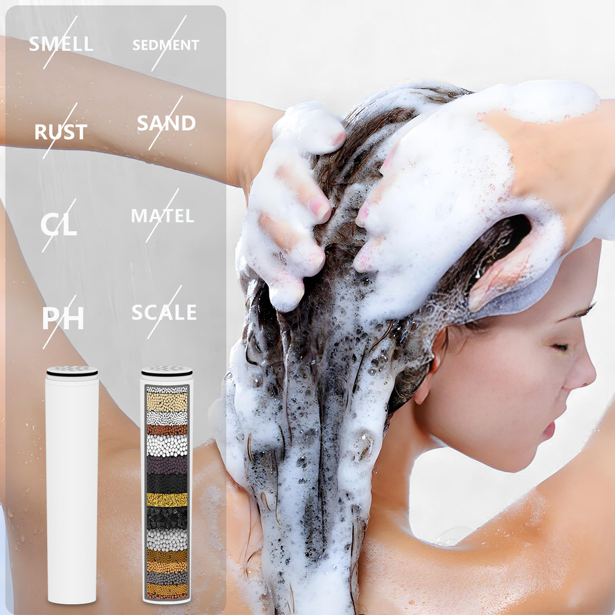 Our Multi-stages shower filter can effectively reduce chlorine, fluoride, heavy metals, rust, sand and other sediment. It effectively controls scale buildup and restores the damage caused by hard water and chemicals to your hair, skin, and nails.