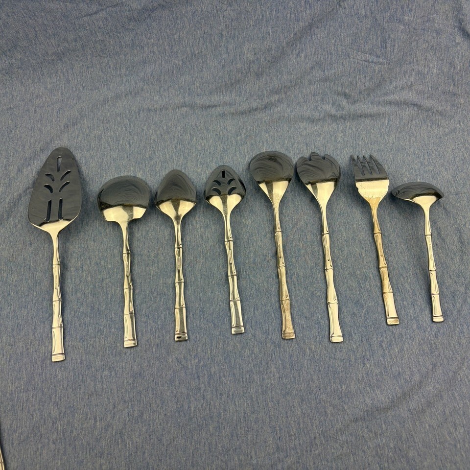 EXF8 by Excel Stainless Bamboo Flatware 28 pc Lot Serving Spoons Fork Pie Korea