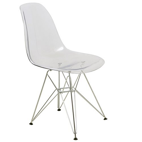 LeisureMod Cresco Acrylic Dining, Modern Chrome Eiffel Base and Curved Back Desi