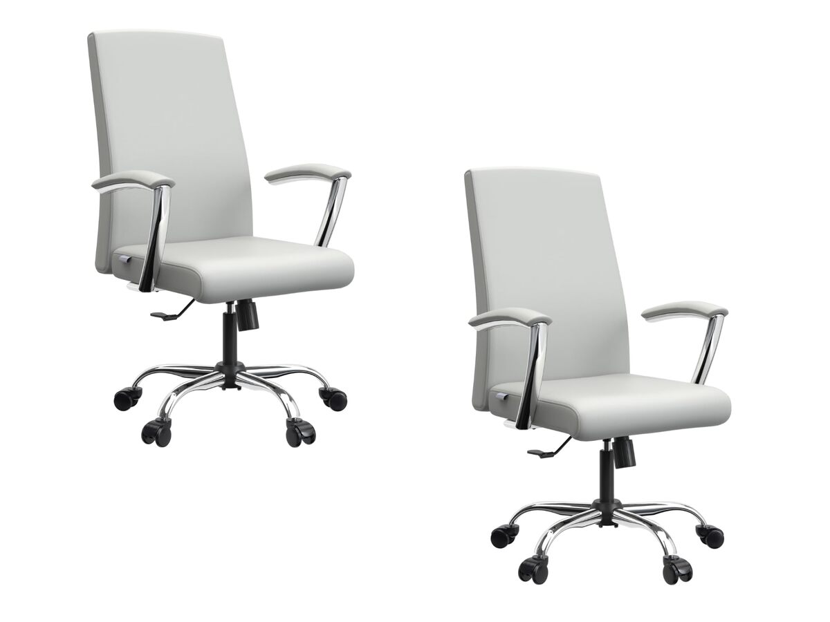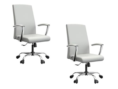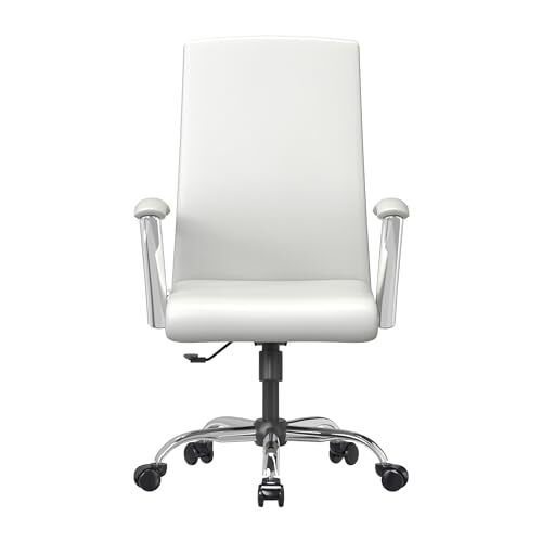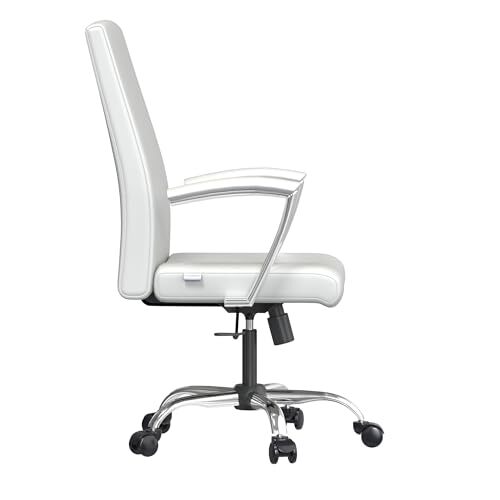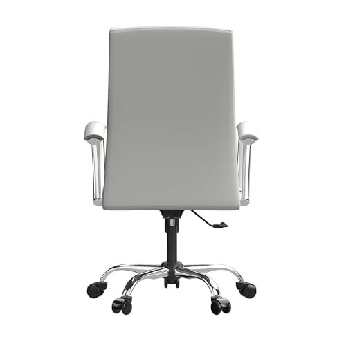 LeisureMod Evander Mid-Century Modern Swivel Office Chair in Faux Leather with A