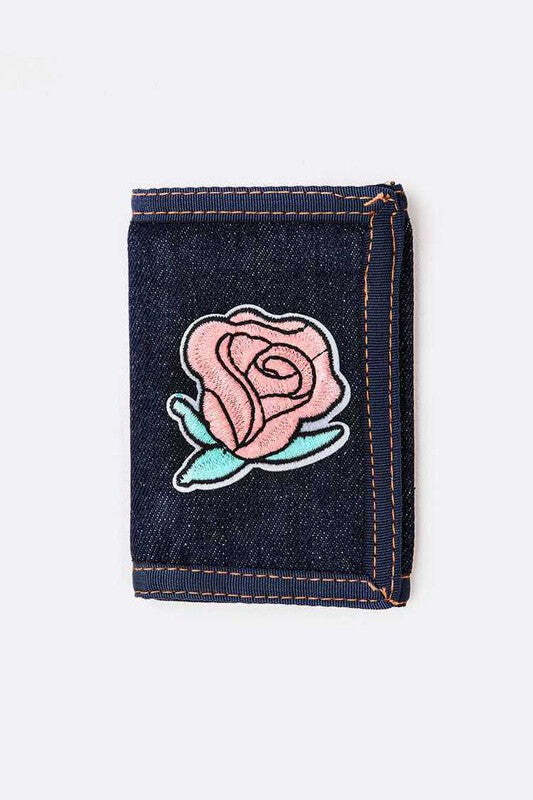 Rose Patch Denim Tri-Fold Wallet