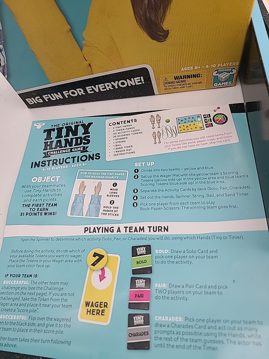 The Original Tiny Hands Challenge Game COMPLETE Moose Games 2017 Family Friends