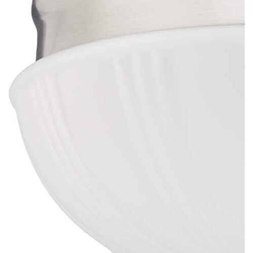 Sleek Brushed Nickel finish with frosted fluted hand blown glass coordinates with any interior style