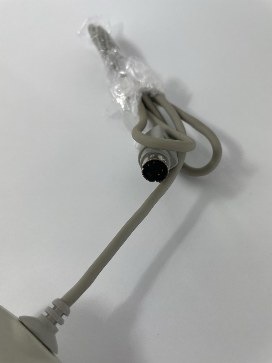 This listing is for a working gray Desktop Bus Mouse II officially licensed by Apple. It is wired with a 4-pin PS/2 port.