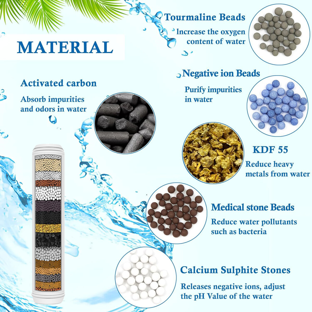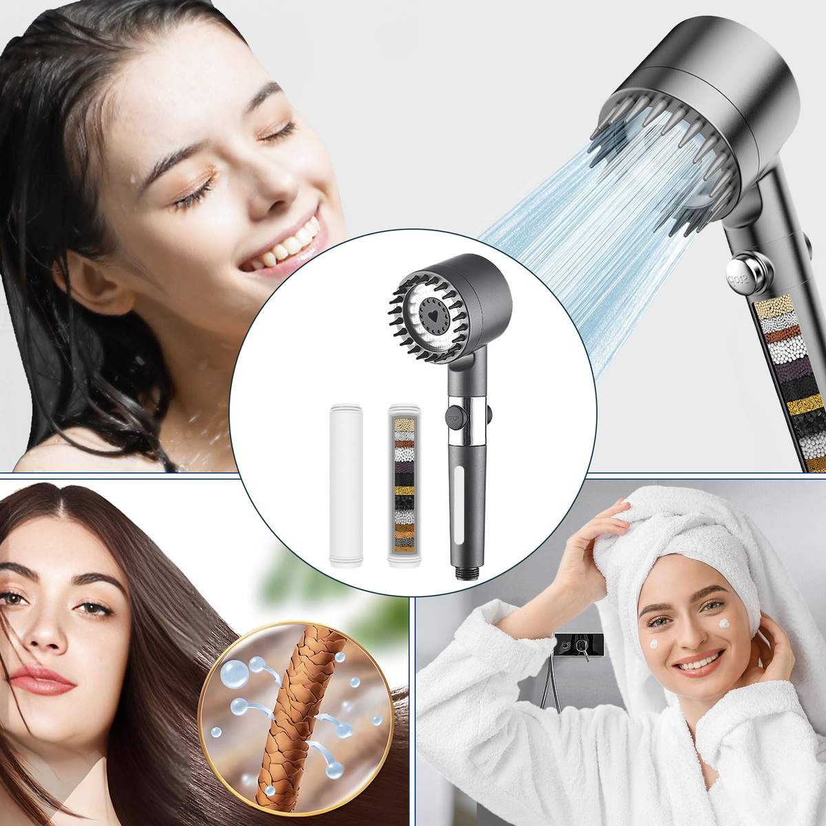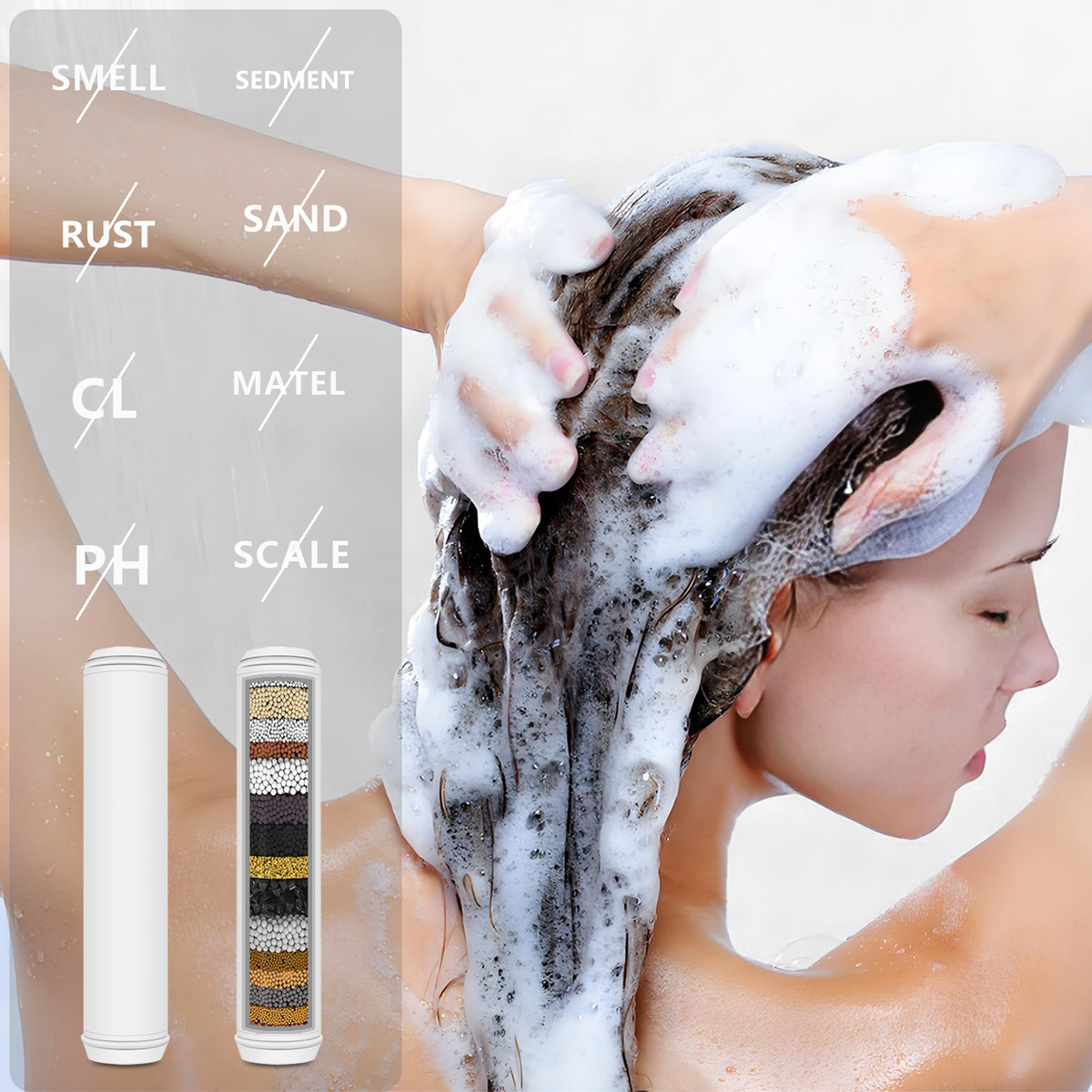 Our Multi-stages shower filter can effectively reduce chlorine, fluoride, heavy metals, rust, sand and other sediment. It effectively controls scale buildup and restores the damage caused by hard water and chemicals to your hair, skin, and nails.