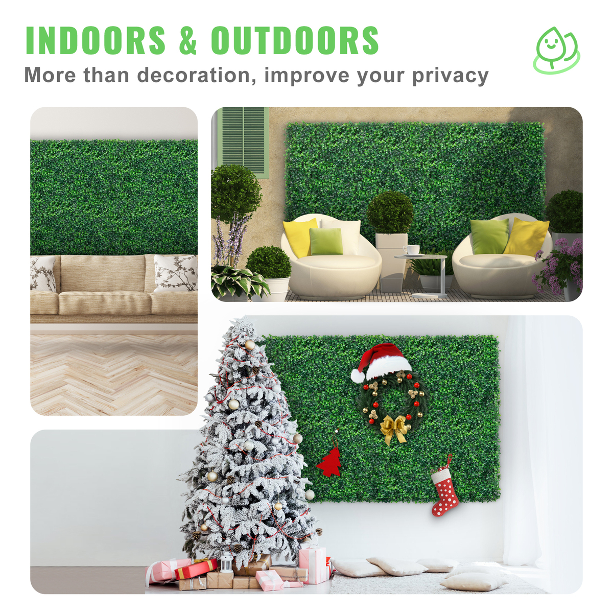 Green Indoor Outdoor: Get ready to create the perfect space. We have provided extra artificial flowers for breathtaking beauty. The boxwood hedge wall panel is essential for creating a unique environment. Whether you are at birthday parties, weddings, banquets, offices, bars, or home, your new backdrop will make a great addition. It is also the perfect choice for photo walls or greenery backgrounds.
