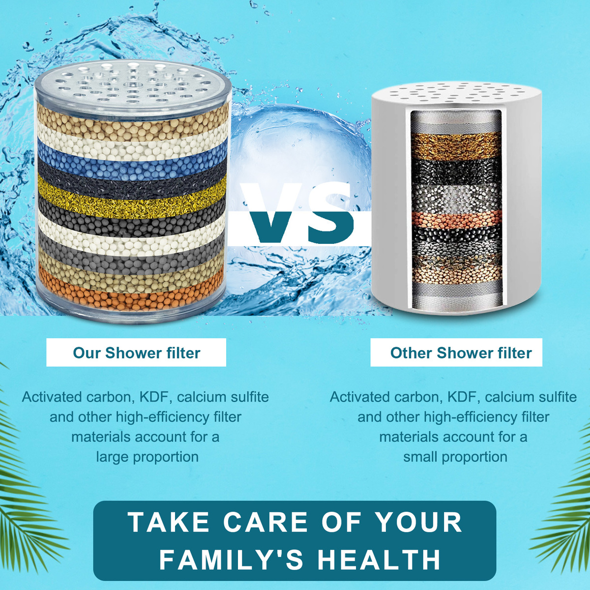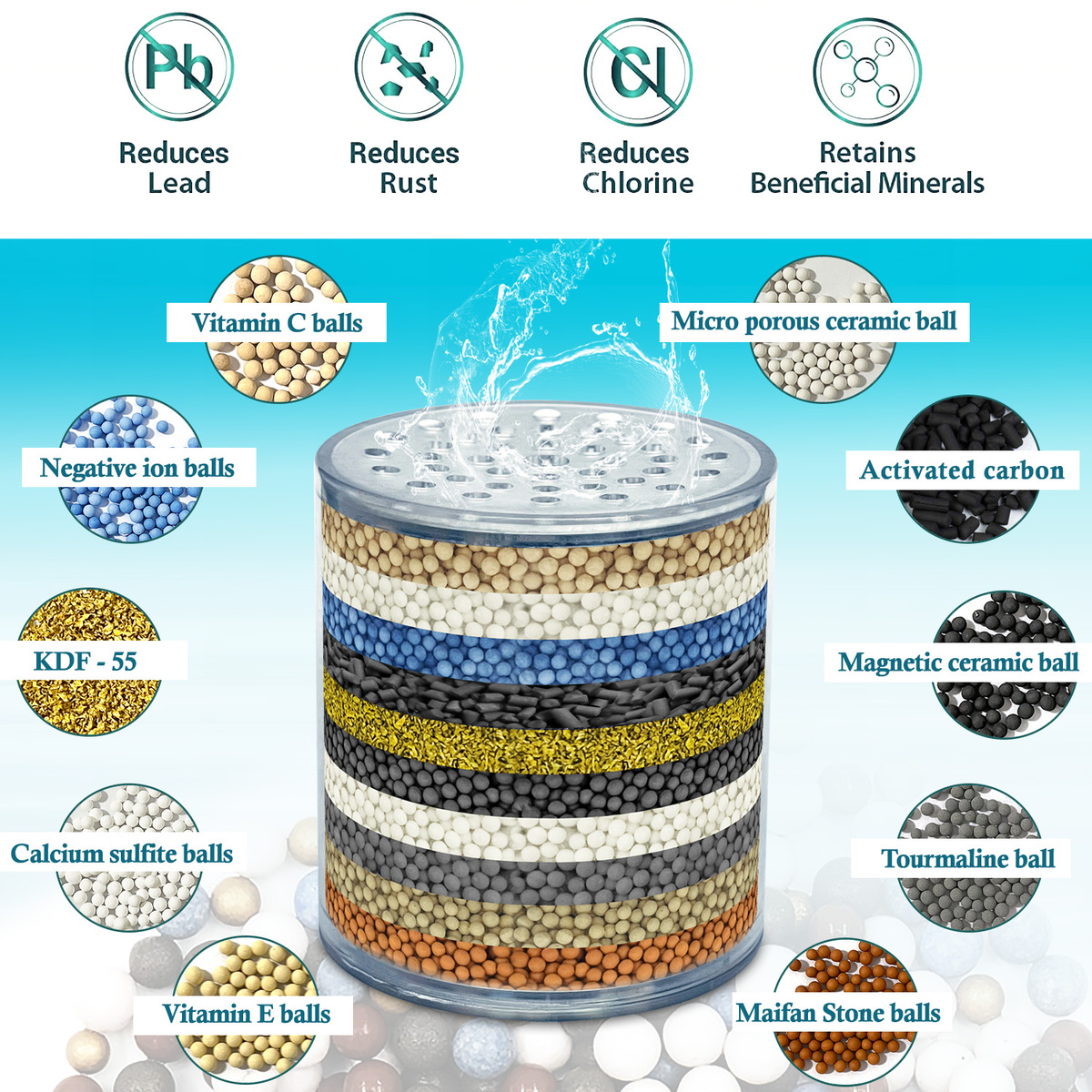 Our Multi-stages shower filter can effectively reduce chlorine, fluoride, heavy metals, rust, sand and other sediment. It effectively controls scale buildup and restores the damage caused by hard water and chemicals to your hair, skin, and nails.