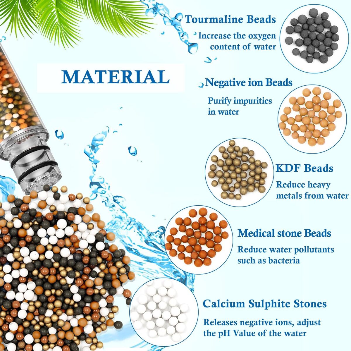Our Multi-stages shower filter can effectively reduce chlorine, fluoride, heavy metals, rust, sand and other sediment. It effectively controls scale buildup and restores the damage caused by hard water and chemicals to your hair, skin, and nails.
