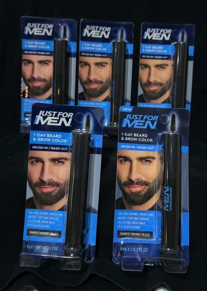 5x Just For Men 1-Day Beard & Brow Color Darkest Brown/Black 0.3 oz Each NEW