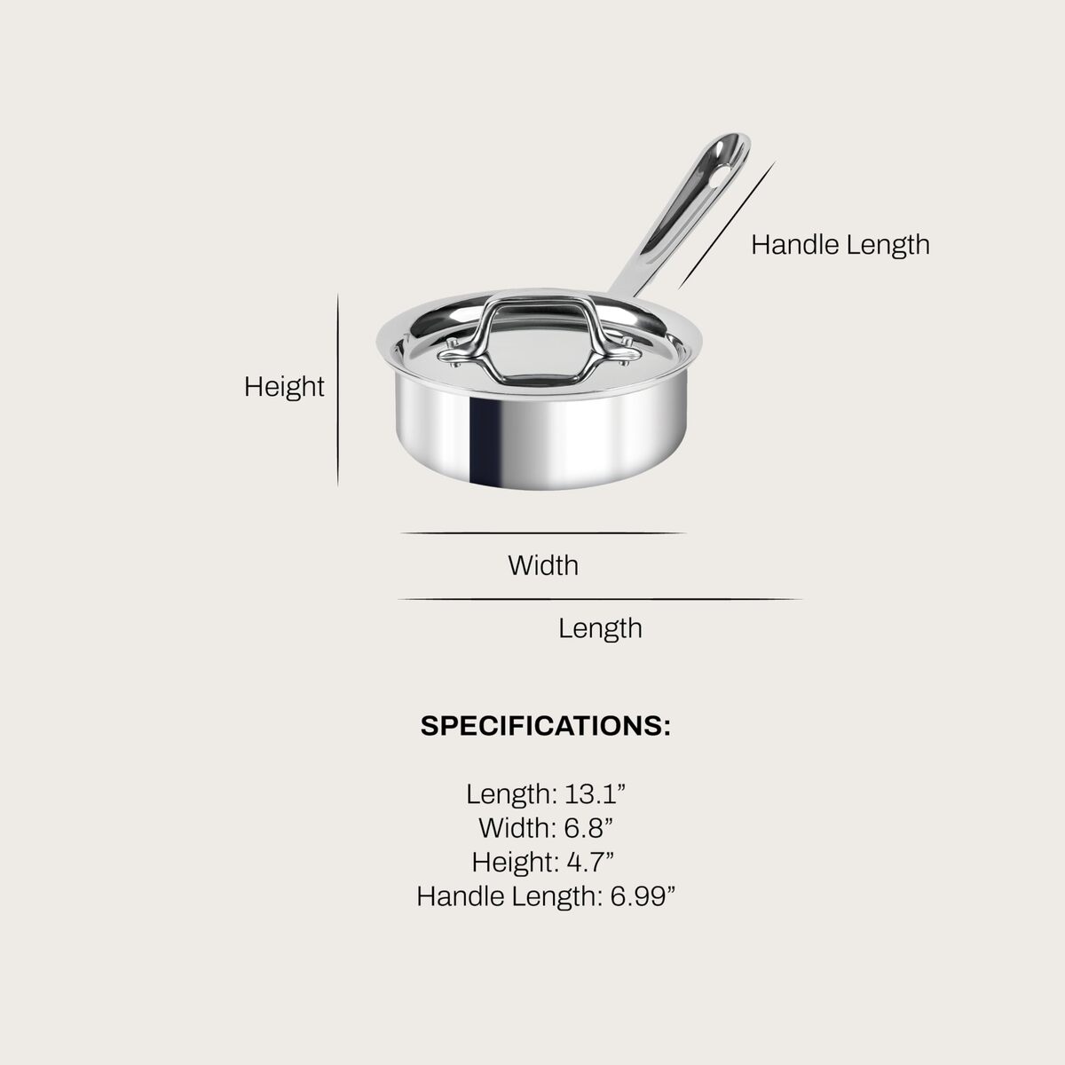 All-Clad D3 3-Ply Stainless Steel Sauce Pan 1 Quart Induction Oven Broiler Safe