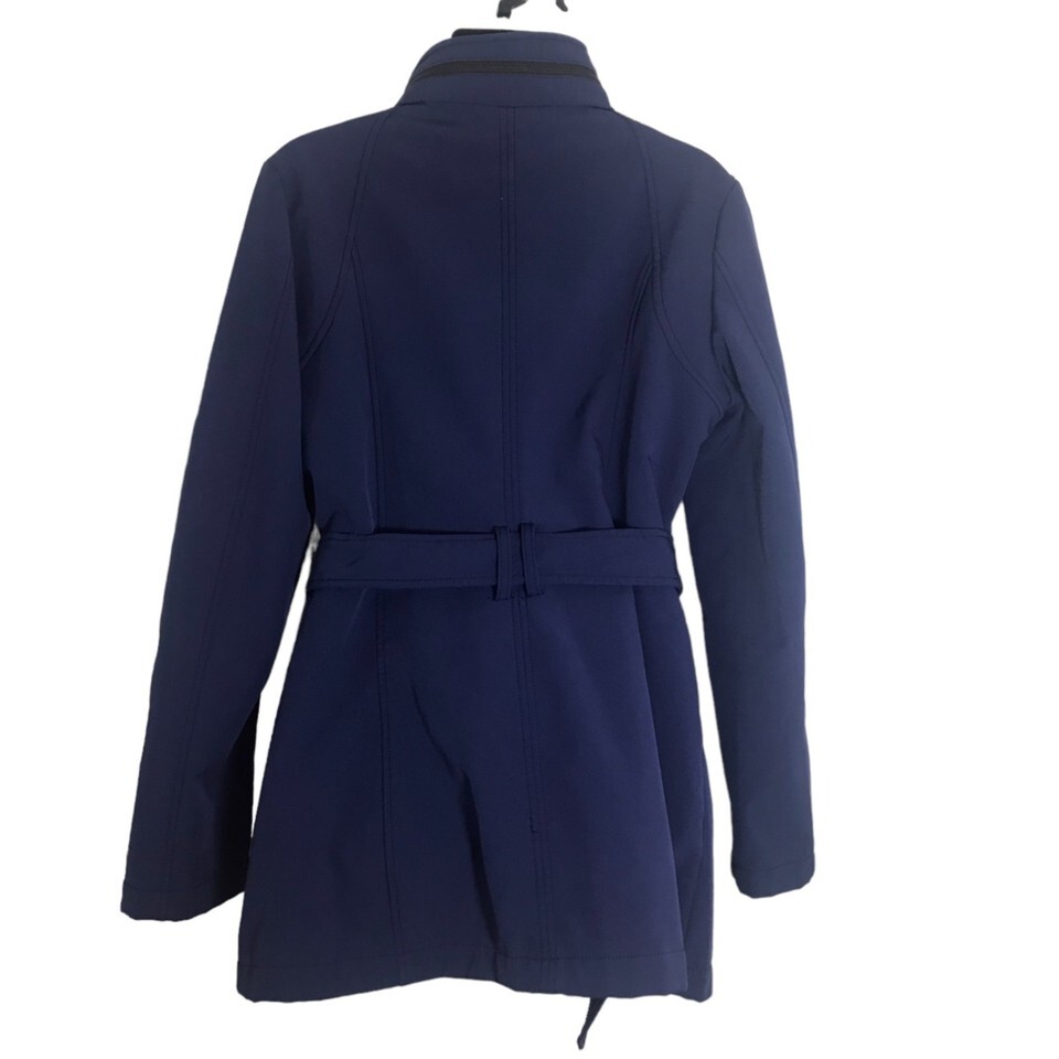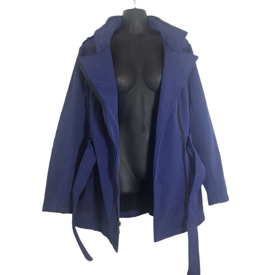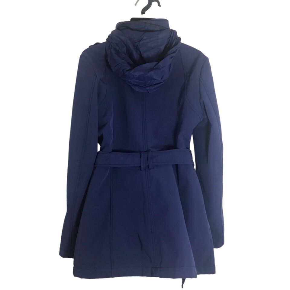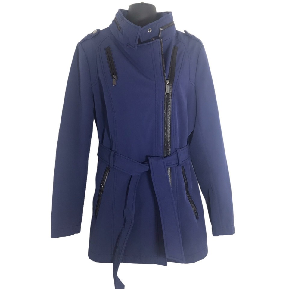 Michael Kors Purple Blue Asymmetrical Softshell Belted Hooded Trench Coat Medium