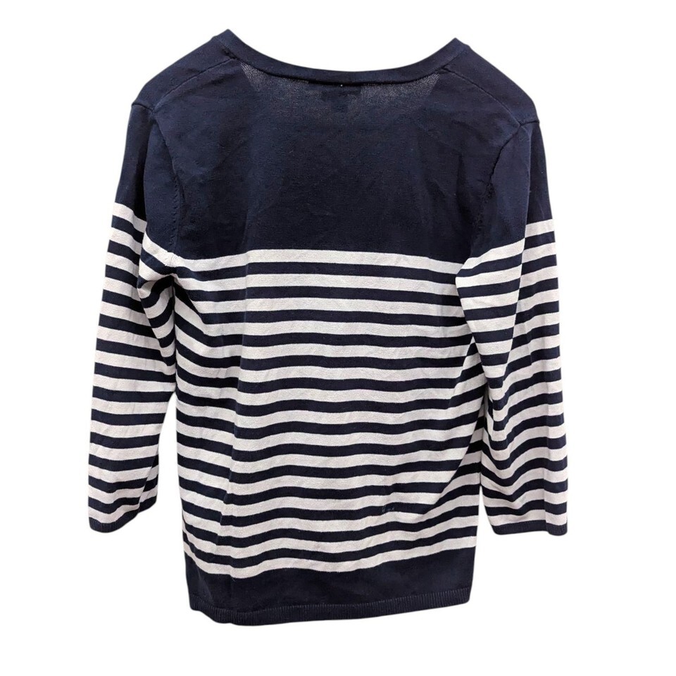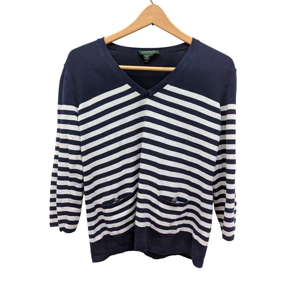 Lauren Ralph Lauren Navy Blue White Striped Nautical Knit Sweater Top Large L