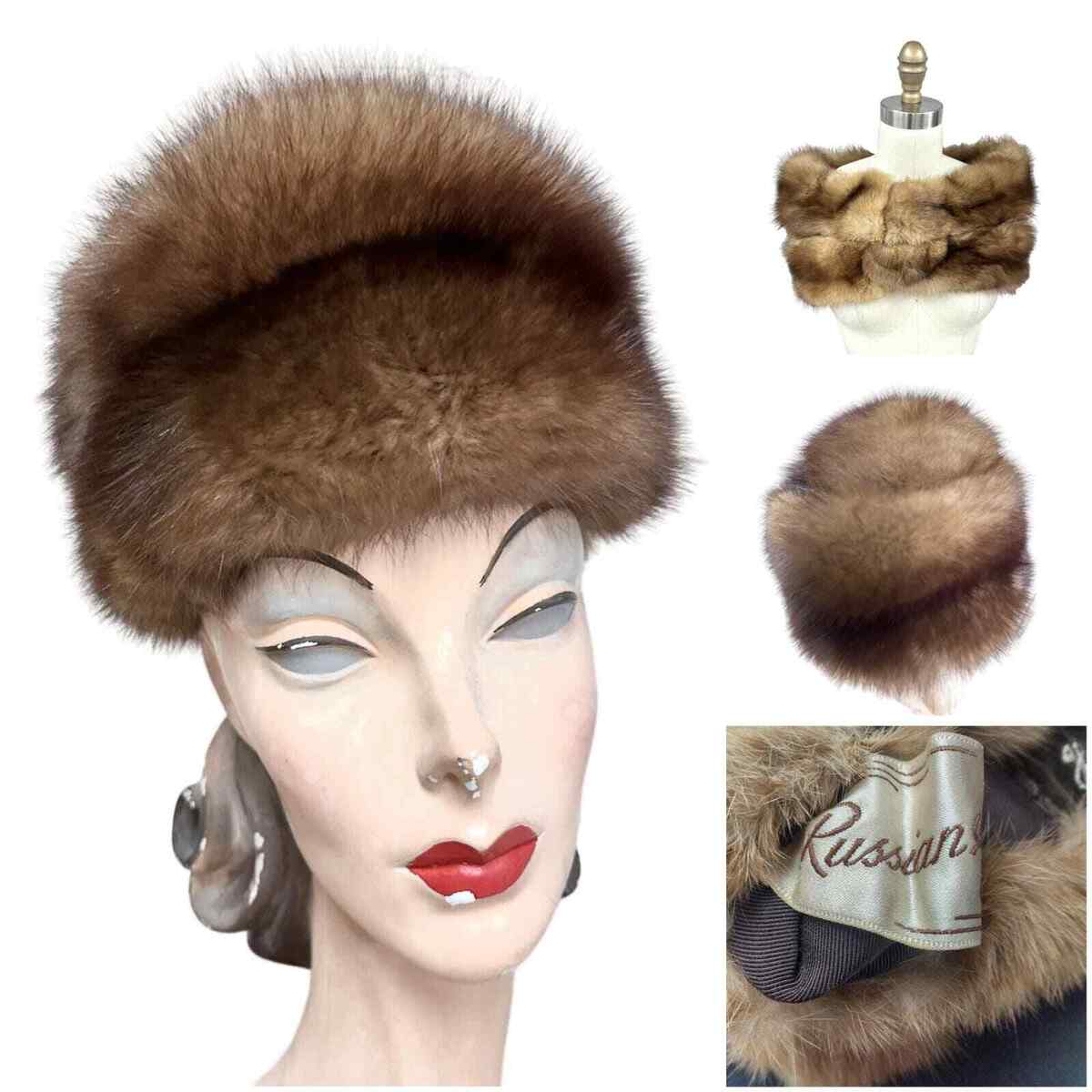 RETRO Authentic Russian Sable Fur Stole+Pillbox Hat Carl Sagan +VTG 50s Mob Wife